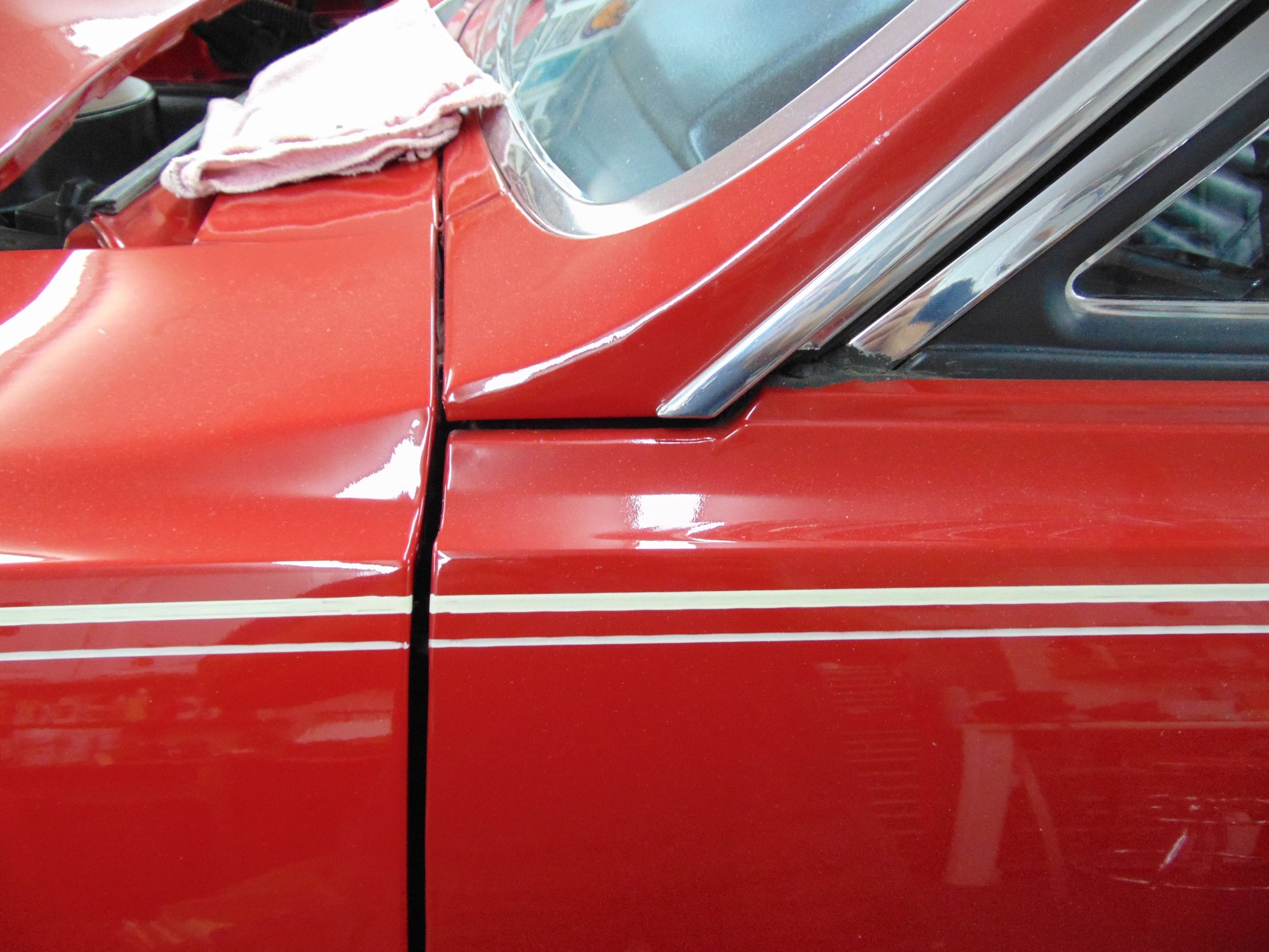 Do you have a better side shot picture of the car so we can see the door gaps at the rocker panel and fender? Alignment starts at the rear of the door following body lines and the door needs to be parallel to the lower rocker panels, then the front fenders align to the door. The fit and finish of body parts were never absolutely perfect on these cars.