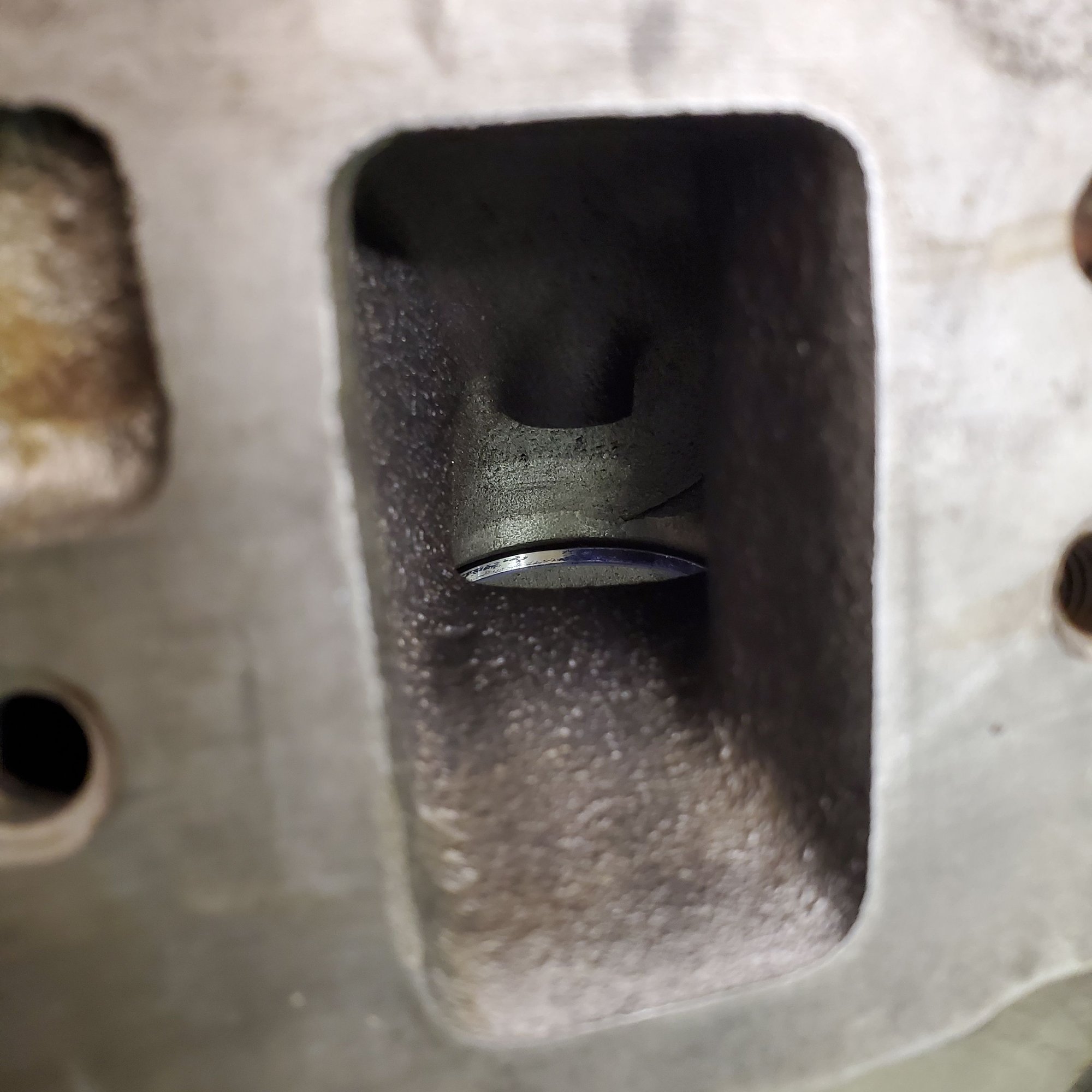 Just got my heads back from the machine shop. I wanted new guides and seats freshened up but they got the wires crossed and put all 16 hardened seats in. They said it was necessary because the old seats were sunken, throwing the stem heights out of spec. Not pleased with that but whats done is done. SO...in some spots the new seats are proud of the old casting and have a pronounced lip. Can I hit this with an die grinder and knock this edge off? Or are you not to touch the hardened ring? Hard to photograph