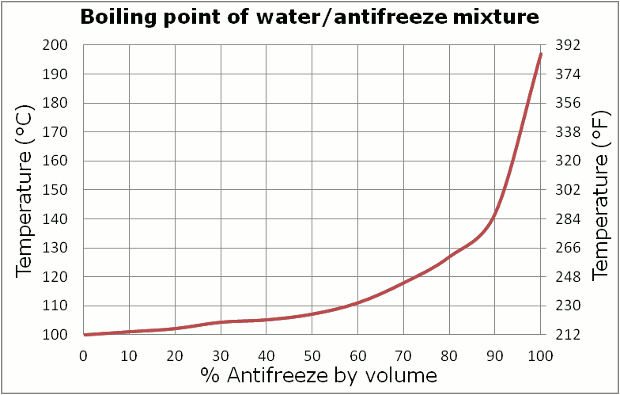 Plus, that chart appears to be at atmospheric pressure. Put the system under pressure and it will raise the boiling point. Doesn't lower the freezing point unless you get to like 60 psi by much, then only like 10 degrees F.