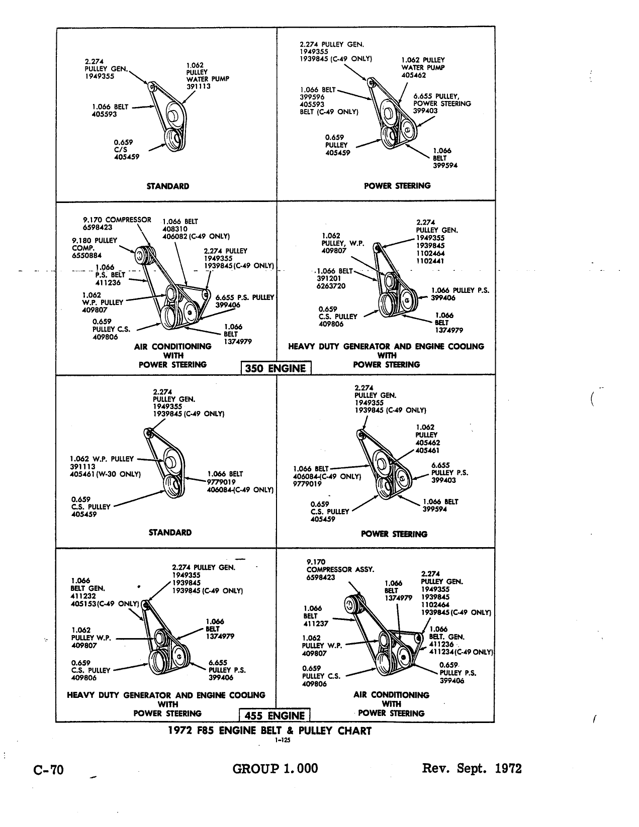 I bought a 72 442 with no motor. I have a 70 455 with a 6 inch water pump I plan on putting into it. The problem is it has no pulleys or brackets. I have a power steering pump bracket and a KA pulley off a core motor was planning on using. It will be an air car planning on vintage air system. The vintage air site shows I need a KK pulley and a KC pulley. Is this correct or is there other pulleys that will work for this? I sold my high school olds back in 1984 now Im wanting to get one fixed up again.