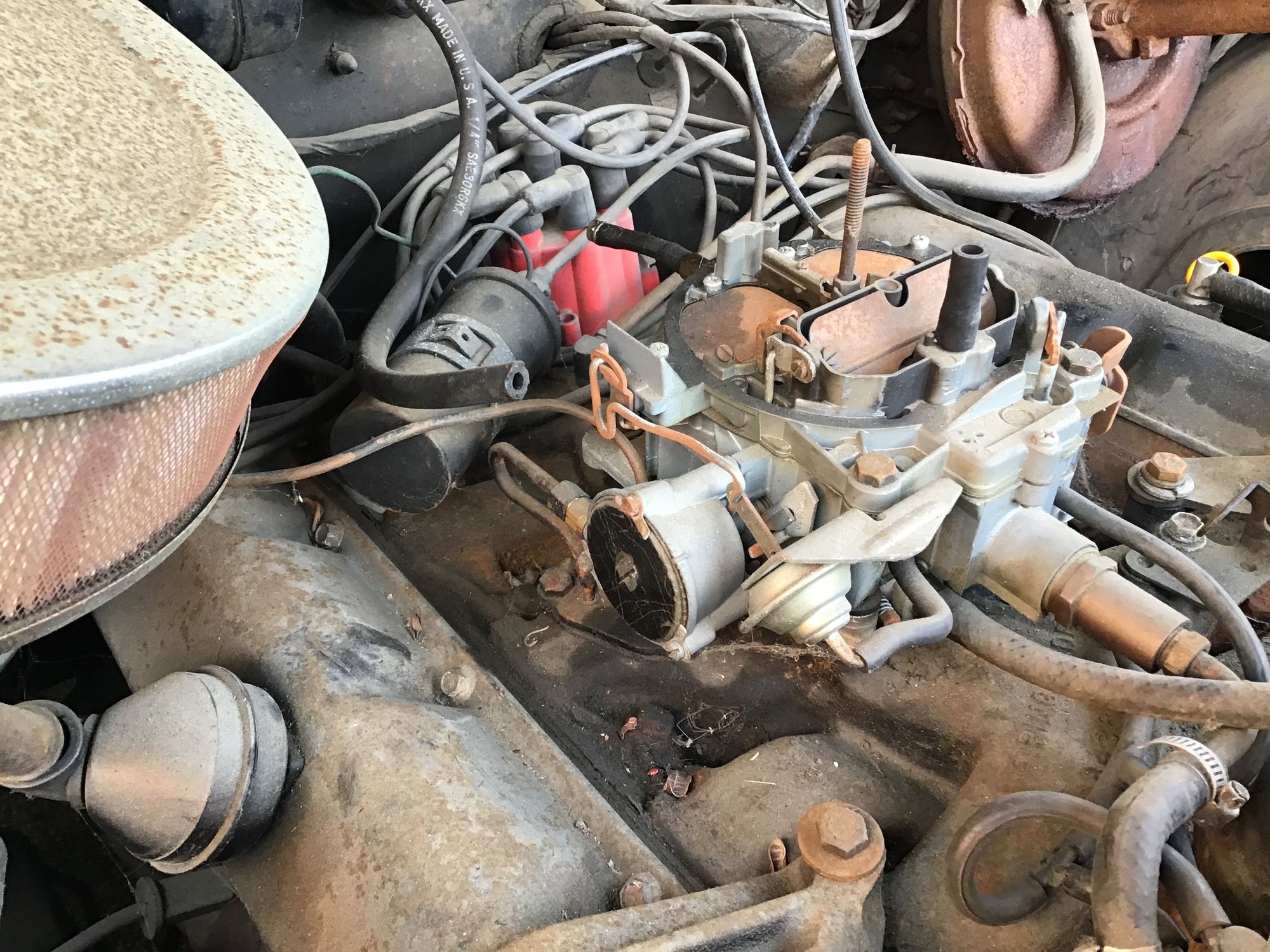 Ok so I’m trying to get my car started there’s some hoses that are not connected and I’m looking for pictures or a diagram of the top of the manifold or vacuum diagram to see were everything goes. Also I’m trying to use the quadrajet carb it came with and need to see if it’s the correct one for this car. Please help What vacuum lines can I plug. What hoses go here. Is this the right carb. I want to go electric choke. I’m missing something here