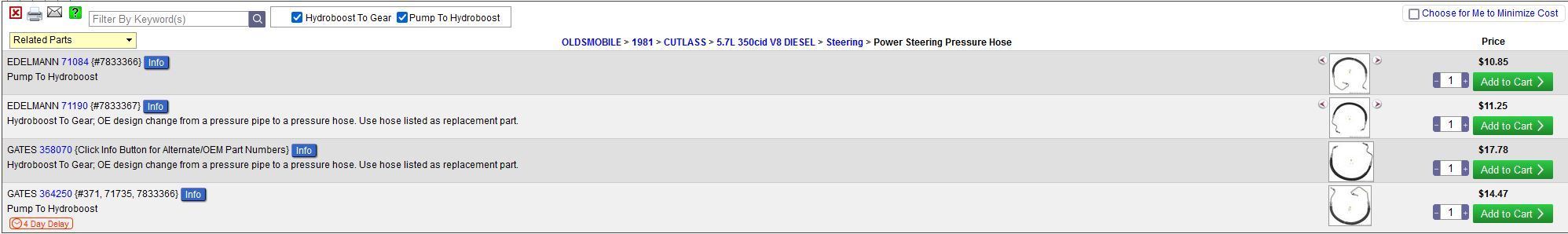 I need one that’ll work with a 5.7 olds diesel that’s what the car originally had in it and that’s what the pump is for I work at Napa and I looked on our parts system and we couldn’t get one without custom ordering it and as far as I know rock auto didn’t show me anything for that