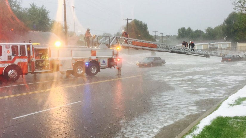 John, Yes. that is all hail, up to 2 feet in some places. And the way that hail acts, I'm assuming the storm sewer plugged up with hail and the backup lifted the manhole covers off. Hail is a different creature than snow, and it makes the accompanying water do some nasty work.