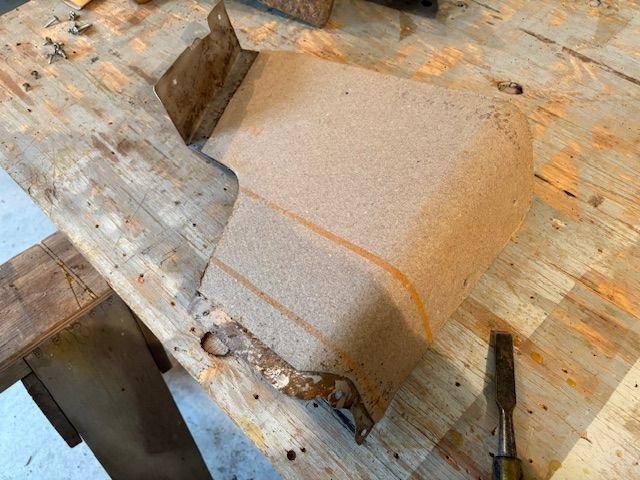 After blasting. These parts are raw steel from factory, and had mostly surface rust, and in a few places, a little more rust. I’ll coat it all with some spray cans of rust oleum