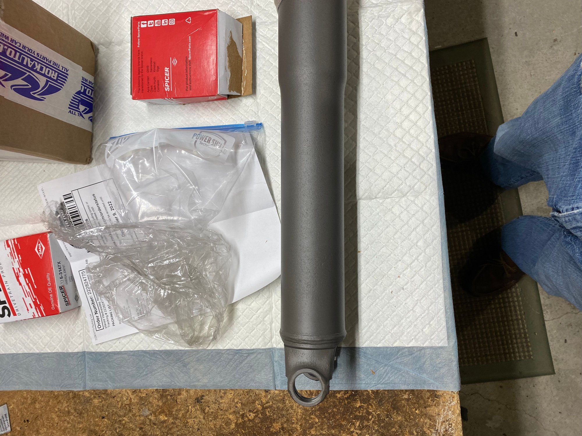 OH if that thing is a 2 piece driveshaft...I doubt I would even bother putting it together. look into the part that looks like it is cut then the other shaft is smaller and fits into the larger...poke in there and see if it is rubber. IF SO... I would pass on that driveshaft. Make a solid one piece and be done. MY opinion...you can still do what you want.