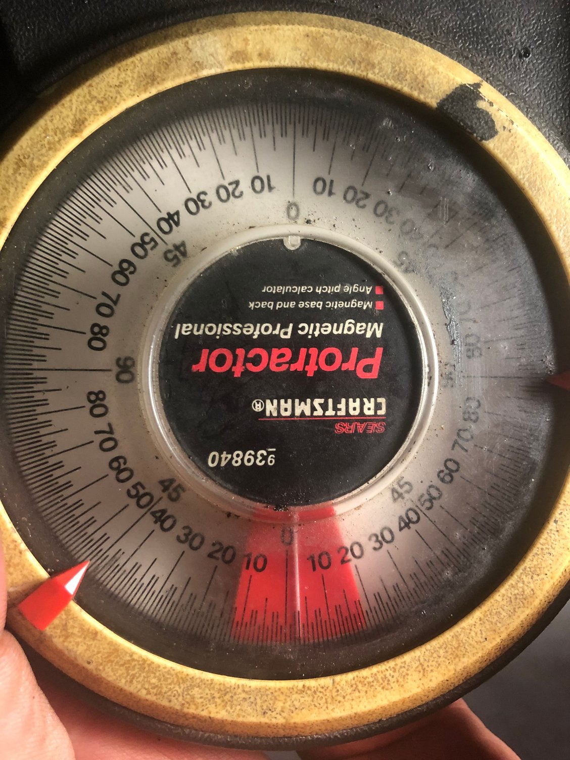 Over the winter I swapped the Olds stamped steel trans crossmember for a Chevelle ((brand X) tubular crossmember. It fits much better, and makes transmission/converter swaps much easier with the big exhaust and X pipe. However, I developed a vibration that starts around 60, and gets worse as speeds go up. It’s worse on decel. I assumed the modifications to use the Chevelle crossmember changed driveline angles, I think I have it corrected now with the adjustable upper control arms. This is a pic of the protractor on a machined pad on the Gear vender. Since the needle is on the right of zero, that means NEGATIVE 2 degrees? This is the protractor on the driveshaft, near the rear U-Joint. Since the needle is left of zero, that’s positive, correct? This is the protractor in a machined pad on the differential, near the yoke.