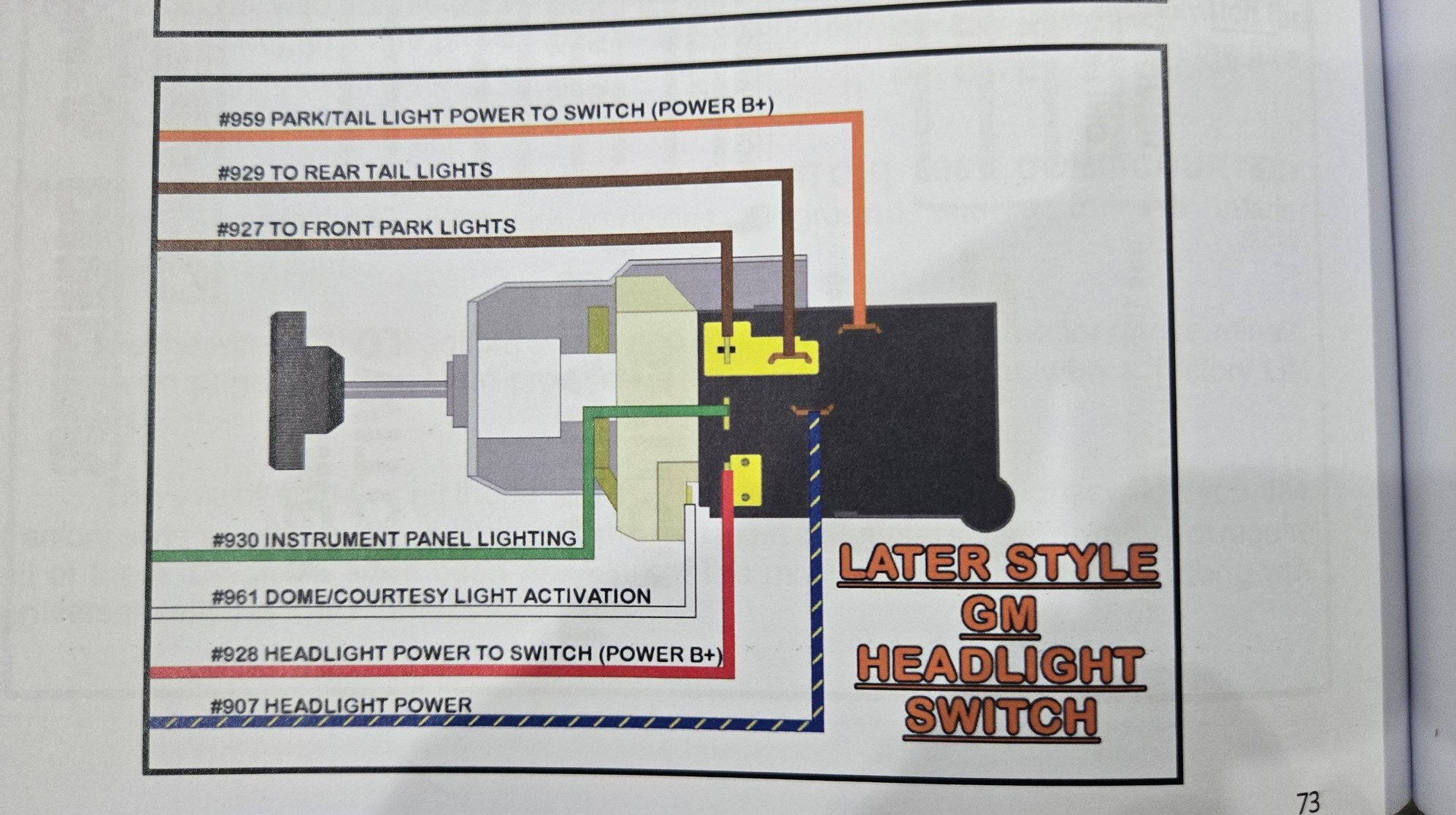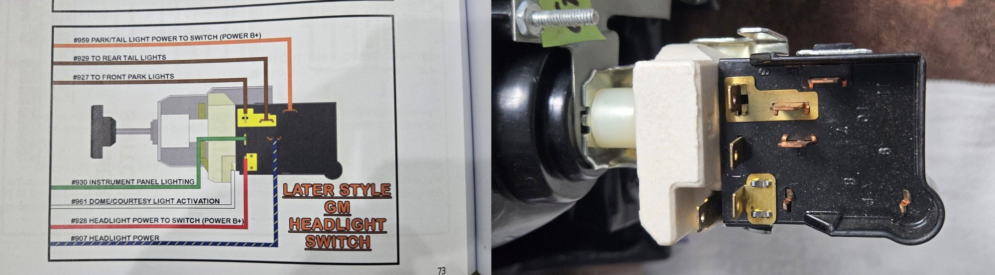 Actually, 1967 was the last year that the park lights went off when the headlights are on. 67-older switches have seven wires, 68-up have six.