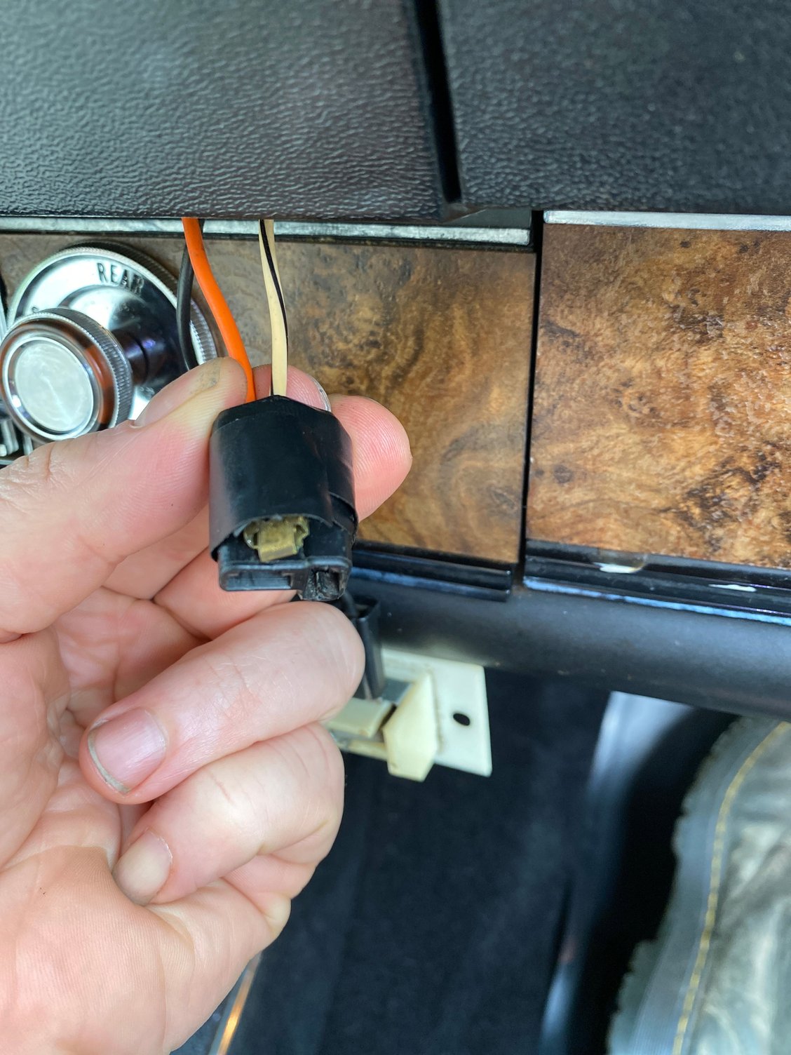 This is how I originally found the plug behind the dashboard. I plugged it in how I assumed it should go per the original picture. If I remove the black and white wire I get no illumination. It looks like the same type of wiring is going to the passenger side courtesy lamp. I attached a picture of that as well. I’m new at using this website so hopefully I’m replying correctly. Thanks for the help.