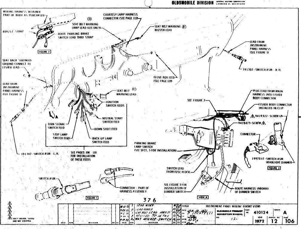 1972 PIM Diagrams pertaining to dash electrical routing