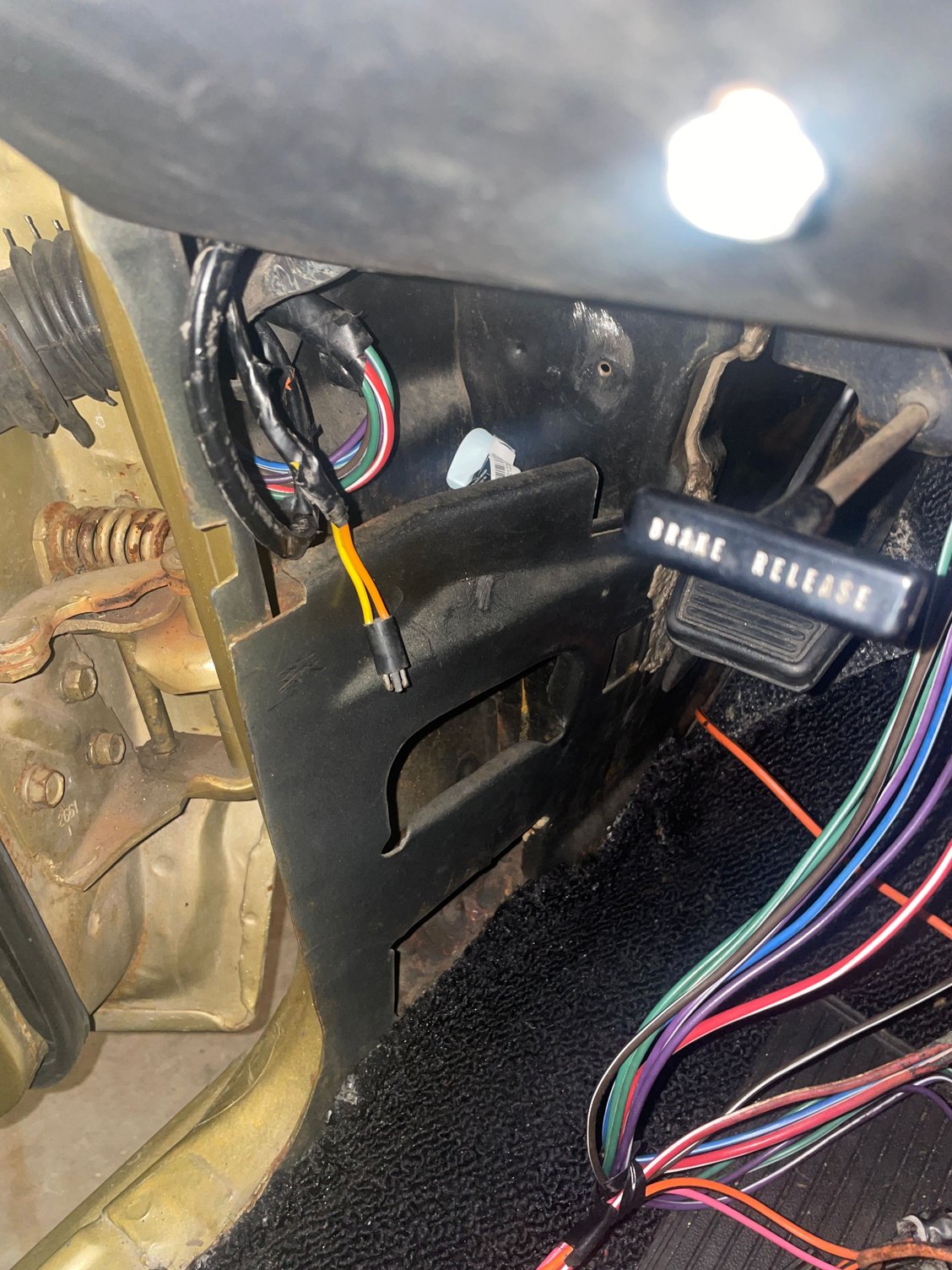 I had originally removed the kick panel to access the power window relay because the power windows weren't working correctly. You can see my other post regarding that cluster! I spent so much time under the dash tracing wires that I bought a device to depress the door switch while the door is open to silence the door buzzer. I knew there was only one door switch. But I had hope. I also removed the bucket seats to make it easier to get under the dash and I know I didn't have to unplug any wires from the seats. But I had hope. Maybe they had been previously disconnected. The replacement carpet in the car was done so poorly I bought new ACC carpet which I have yet to install. Maybe the power seat back relay was really under the carpet (oh no, not another relay).