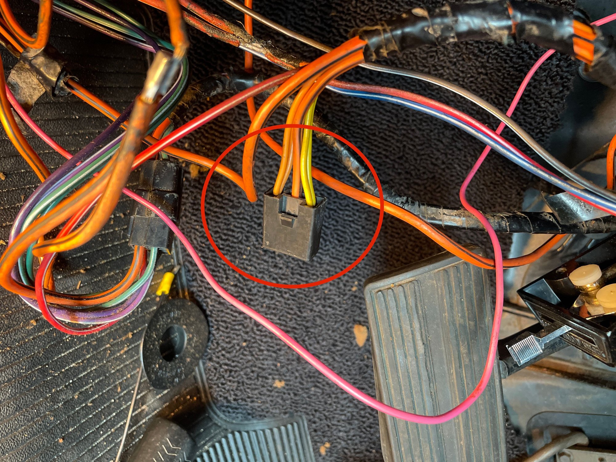 I agree. It doesn't look familiar to me. Doesn't look like any factory plug that I have seen. My only guess because I have never dealt with one would be a power seat back release but like I said doesn't look like any Oldsmobile plug that I have seen before.