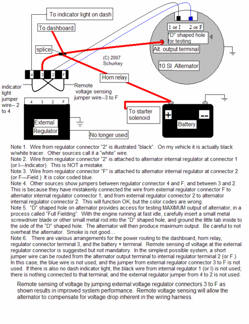 The swap couldn't be easier. Make two, three-inch jumper wires with female blade terminals, buy an alternator pigtail with the alternator. The old alternator plastic wiring connector has two blades side-by-side, parallel, like this " | | ". The newer, internally-regulated alternator has two blades, side-by-side, in-line, like this " _ _ ". therefore you need an updated molded-plastic connector which gets soldered into the wire harness.