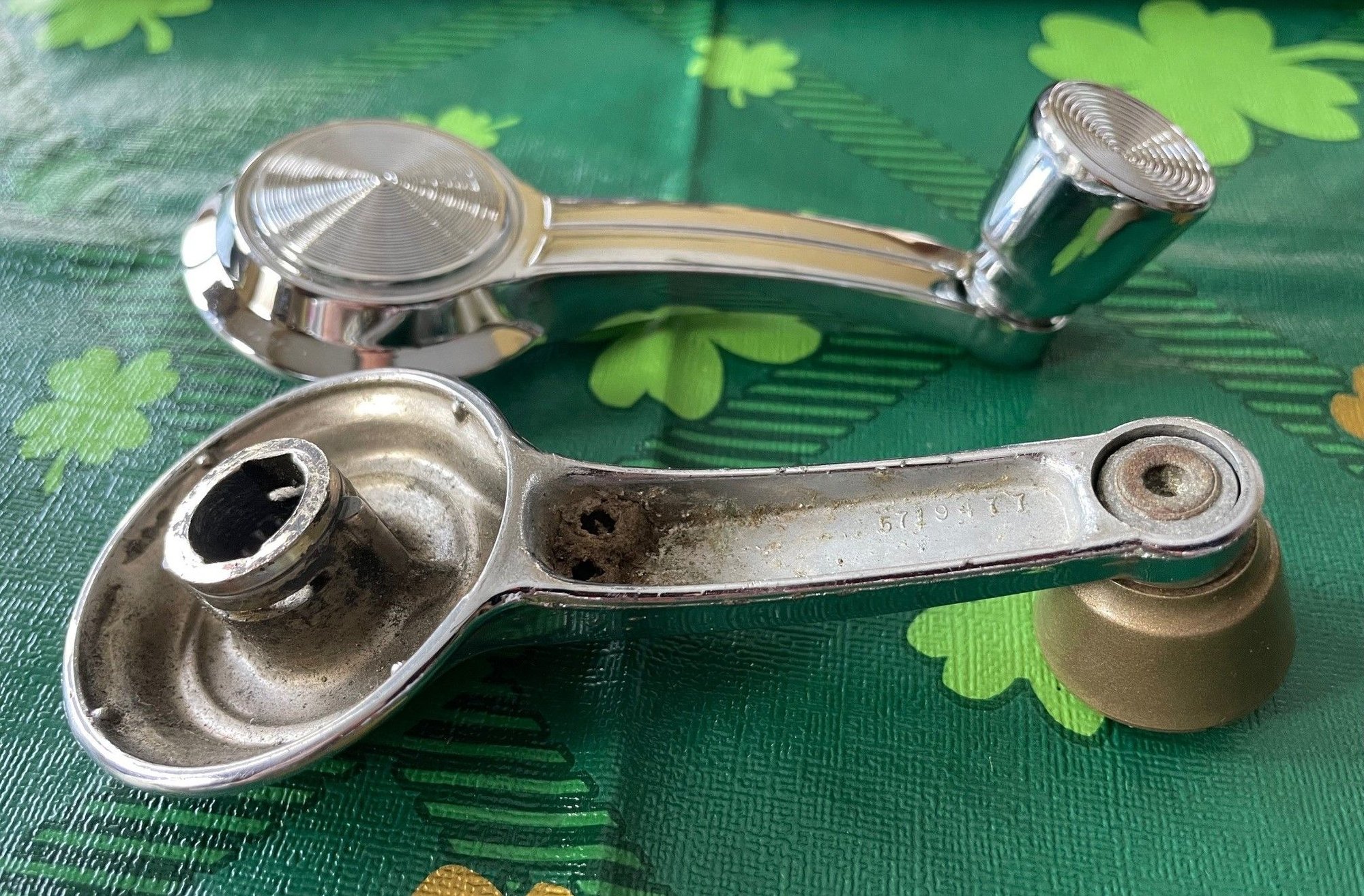 I'm looking to mount the plastic **** from a pitted window crank handle to an unpitted repro handle. Looks like I just need to drill out the **** rivets, then maybe screw in the transferred plastic ****. Or?