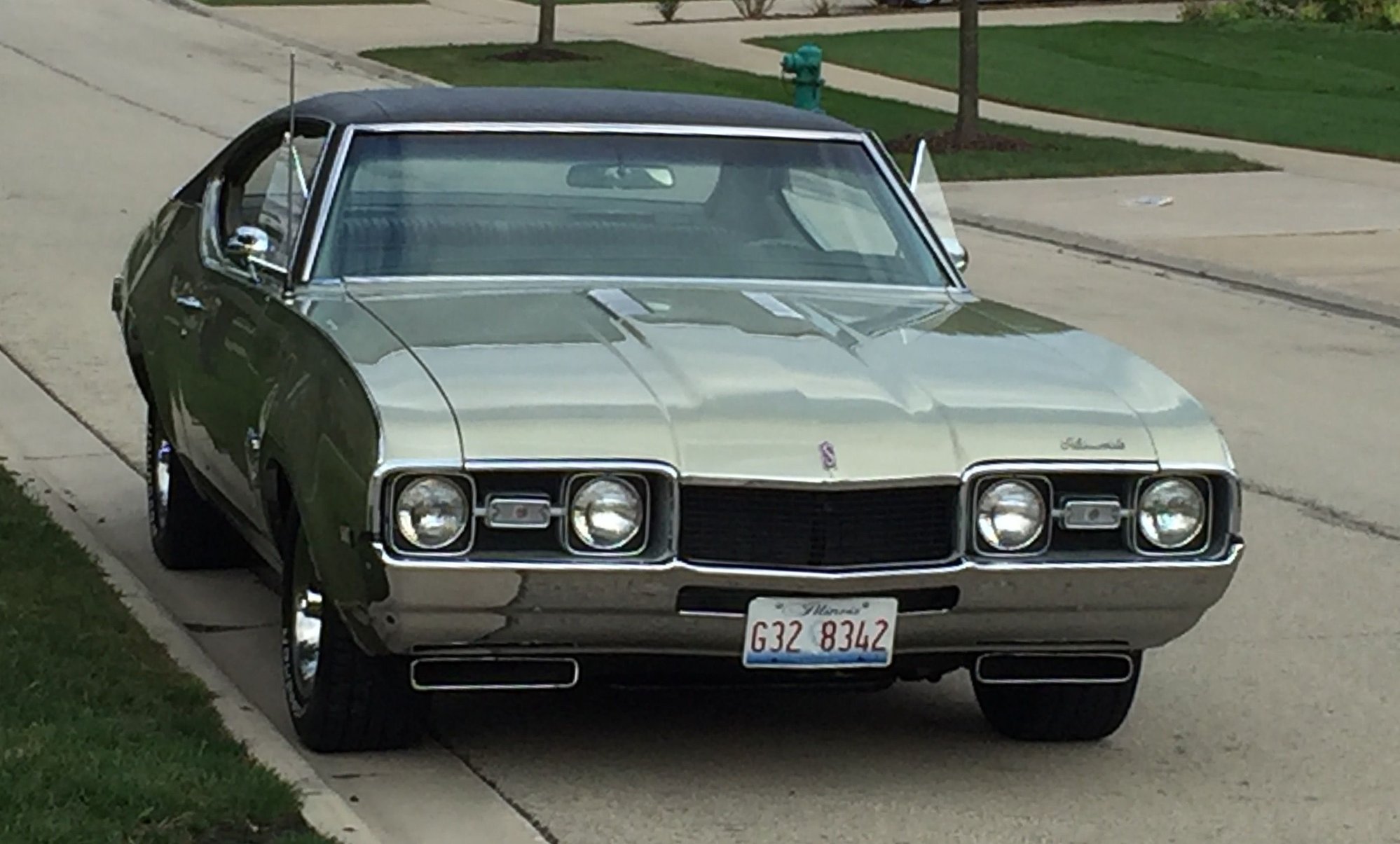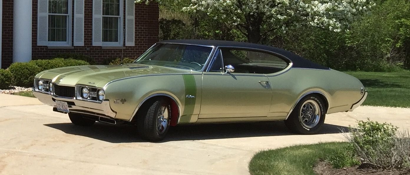 Beautiful car. Love the 1968 442 bought a Nocturnal blue one the day I got out of ARMY in 1969 wife always side it was best car I ever owned wish I kept it trades for Vette I t was a/c car and front was always lower on left side .