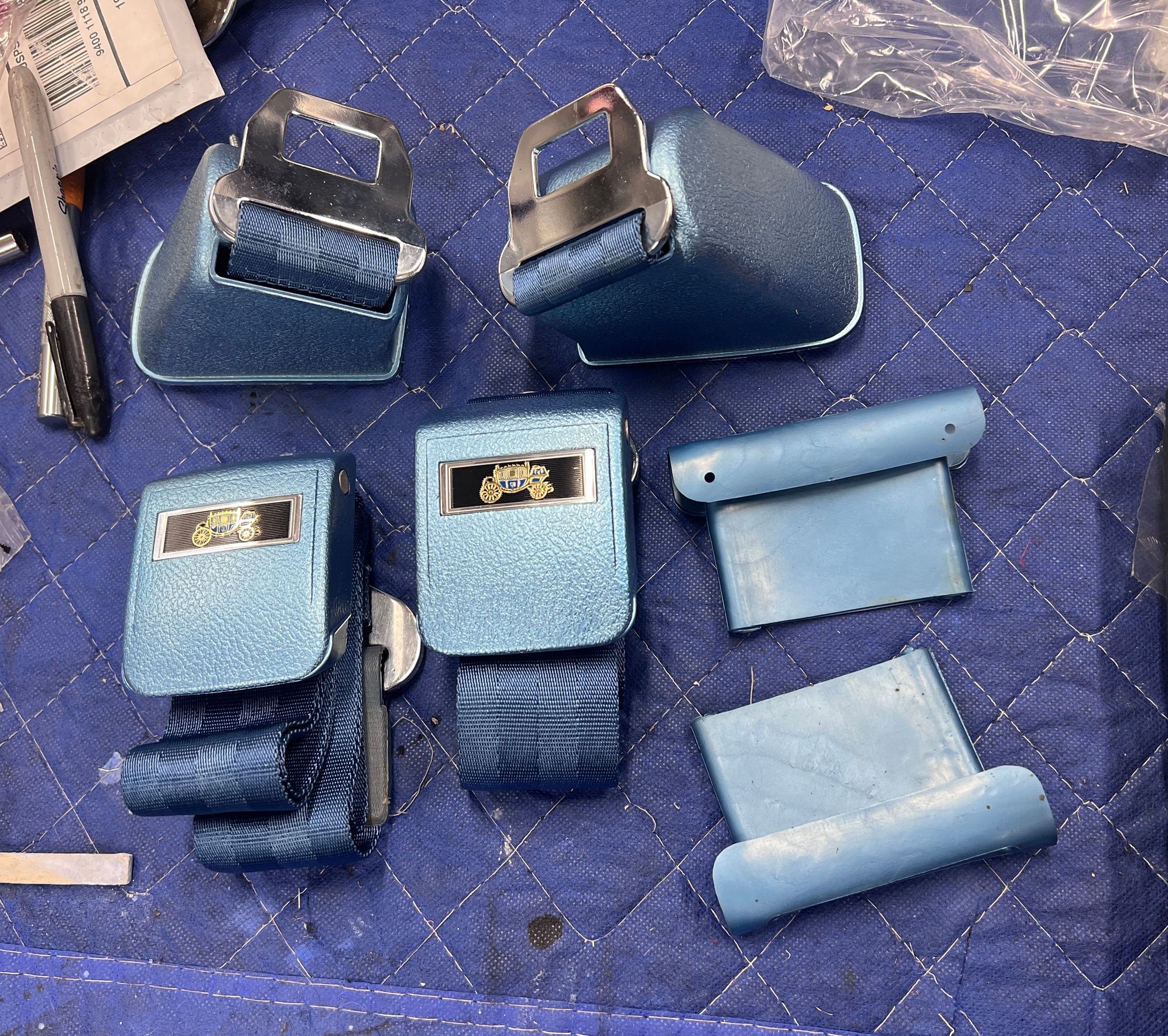 this picture shows his finished work. However, the originals were molded in a flat blue not this metallic that he refinished them with.