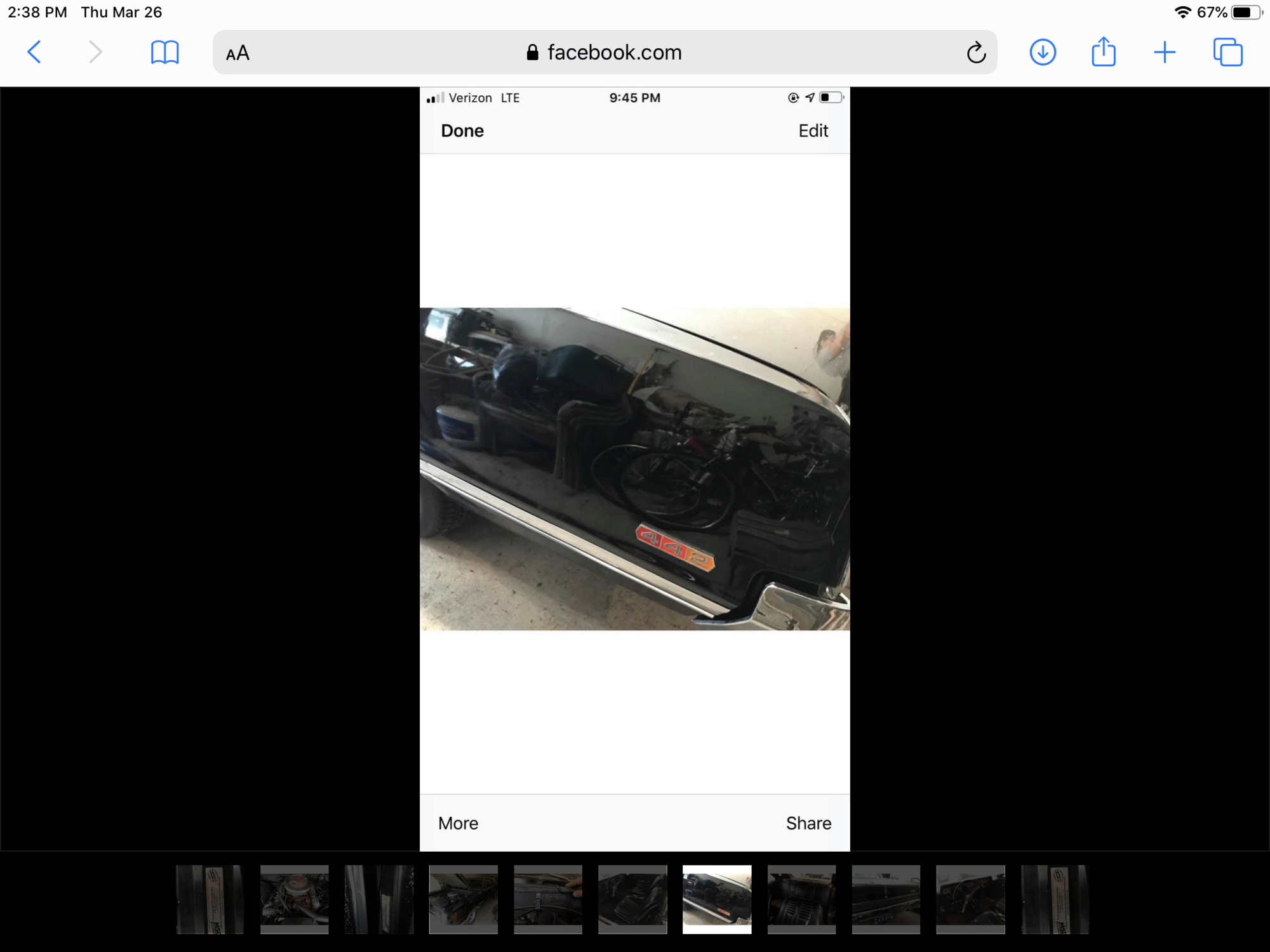 air cleaner top looks original but base is not. Looks like it has a holley carb on it. this not stock, air cleaner hold down should be chrome and can be bought aftermarket reproduction. valve covers are aftermarket, Should have V code on the right head, B heads, 390390 intake, E code 400 motor, no vin on these to "numbers match" but if the original protector plate is in the warranty book, the V code on the head would be in it. IF all original and only proves one head is original. Nice car, Hope it works out.
