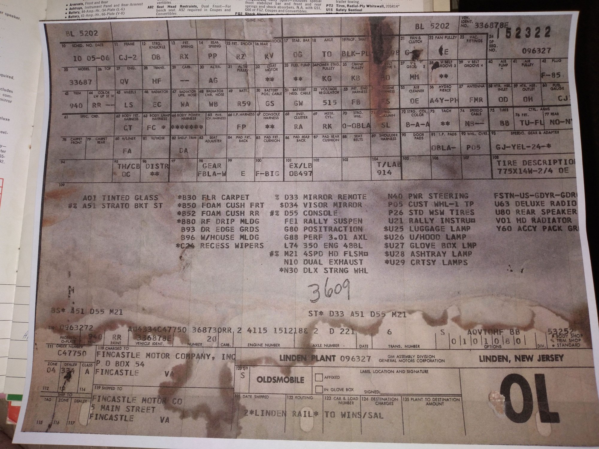 How do you interpret that date code in the upper left corner? This car could have been ordered before the ram rod option was even announced, and someone just wanted a hot rod cutlass....