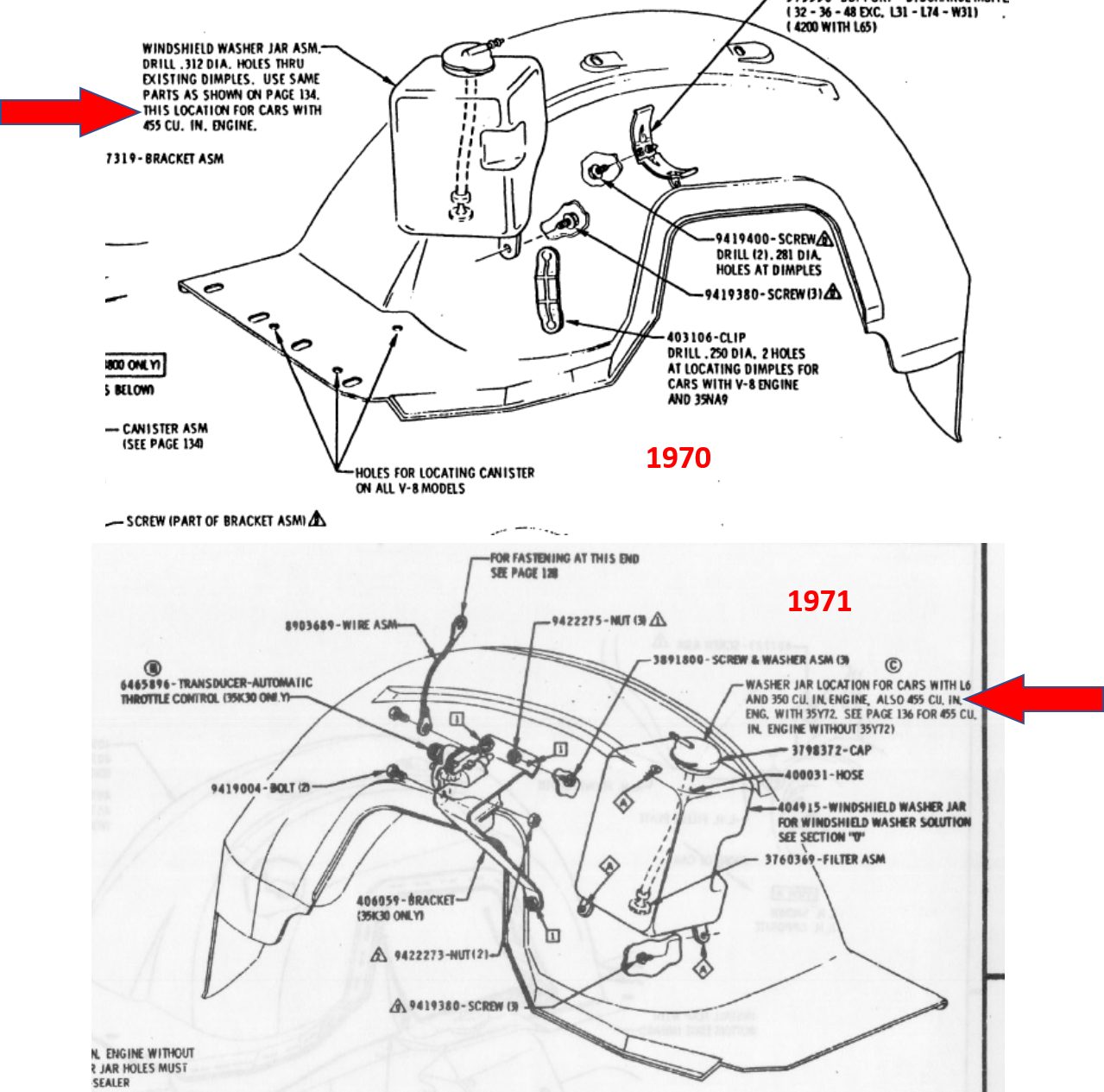For 35 years I’ve been using OE washer tanks as overflow tanks on small block cars (apparently), mounted exactly like the washer tank on the right fender liner in Joe’s diagram. IIRC some have been black, some “white” depending on the donor car’s model year. Worked and continue to work like a charm but not gonna get you any points at the Olds show.