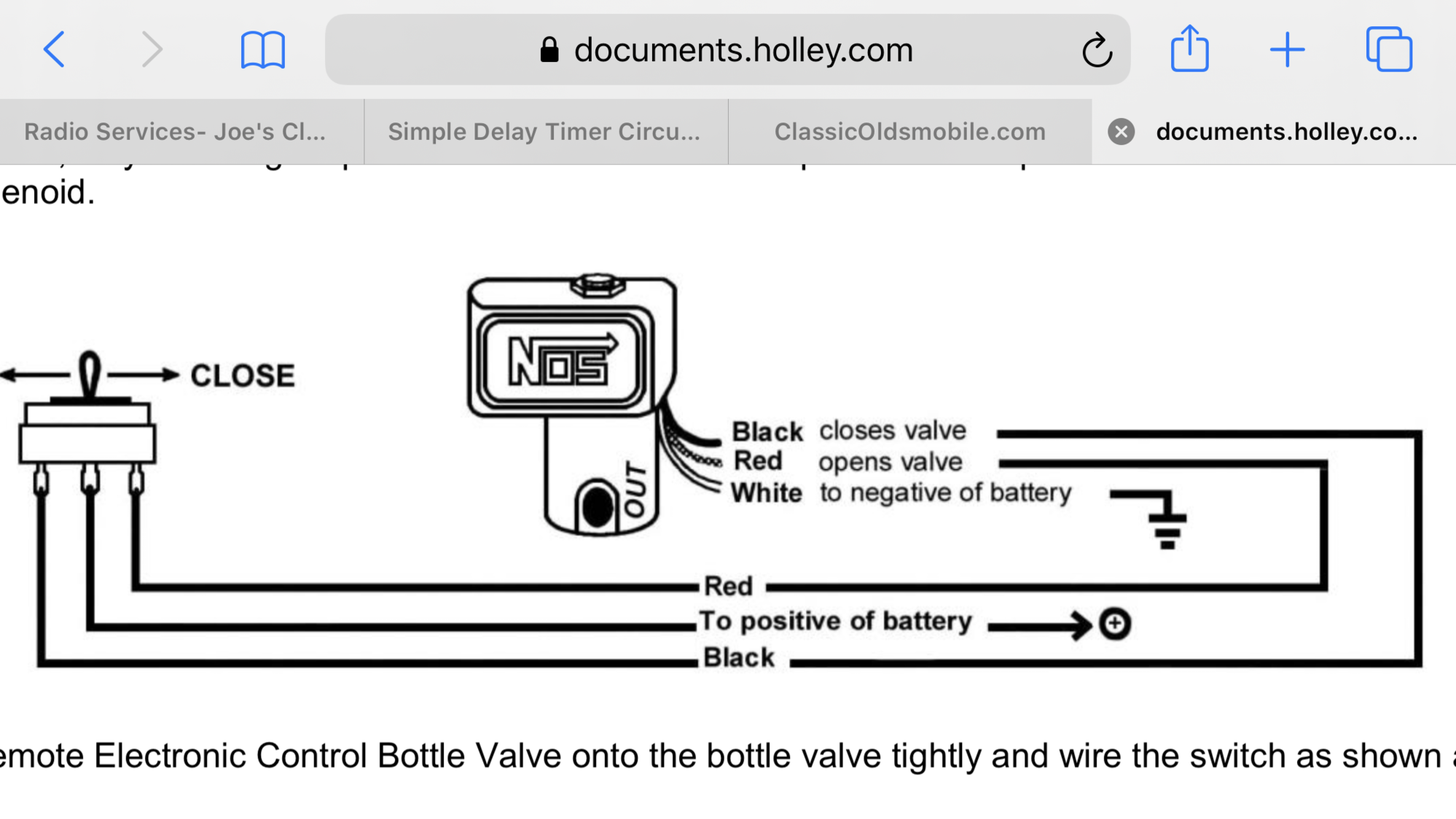 I have had this NOS remote bottle valve for years. I had it on the car for awhile, the only issue is it gets HOT when used. I know I could use a momentary switch to open/close the valve, but I’d rather not have the interior of my car look like a airplane cockpit with multiple switches. What I would like is to build a simple circuit that would take a constant on signal ( as in flipping on the Master Arming switch) and cycle the bottle valve open, then shut off. Turning off the arming switch would momentarily apply voltage to the closing coil of the bottle valve, then shut off. As a safety measure, I think it would be a good idea to have the bottle valve automatically cycle off when turning off the key.