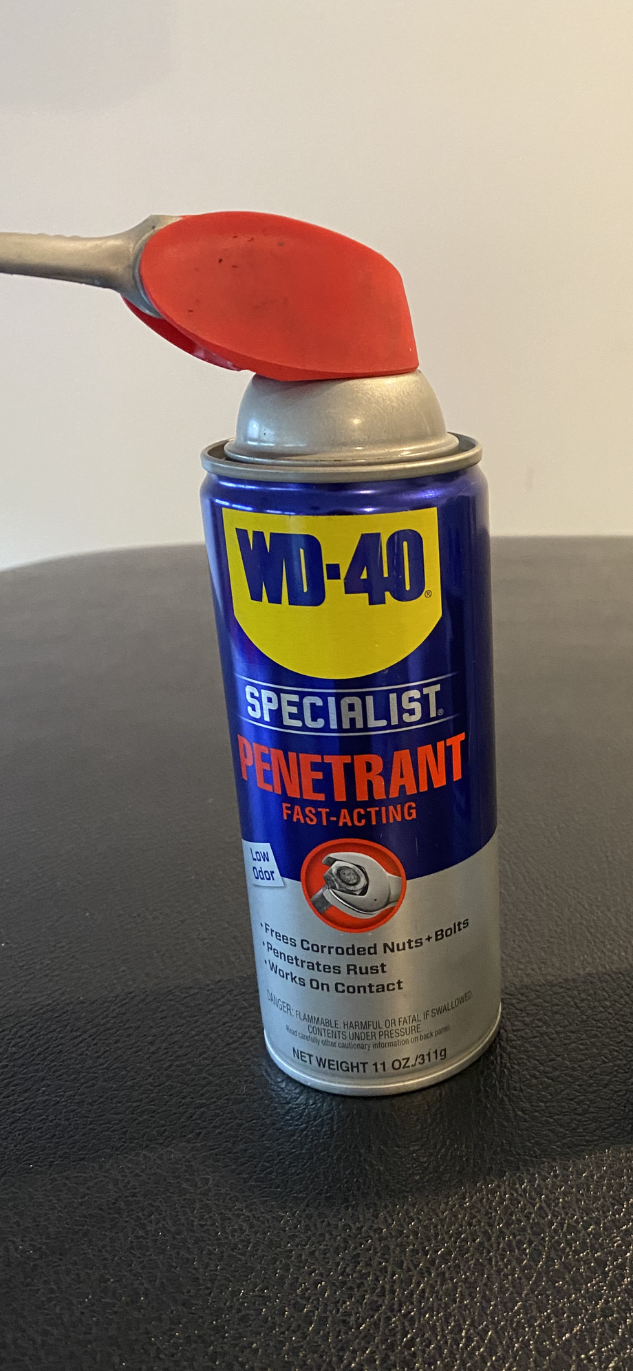 I figured the same thing. Just curious, have you had any luck finding/using the WD-40 Penetrant? Probably too soon to ask.
