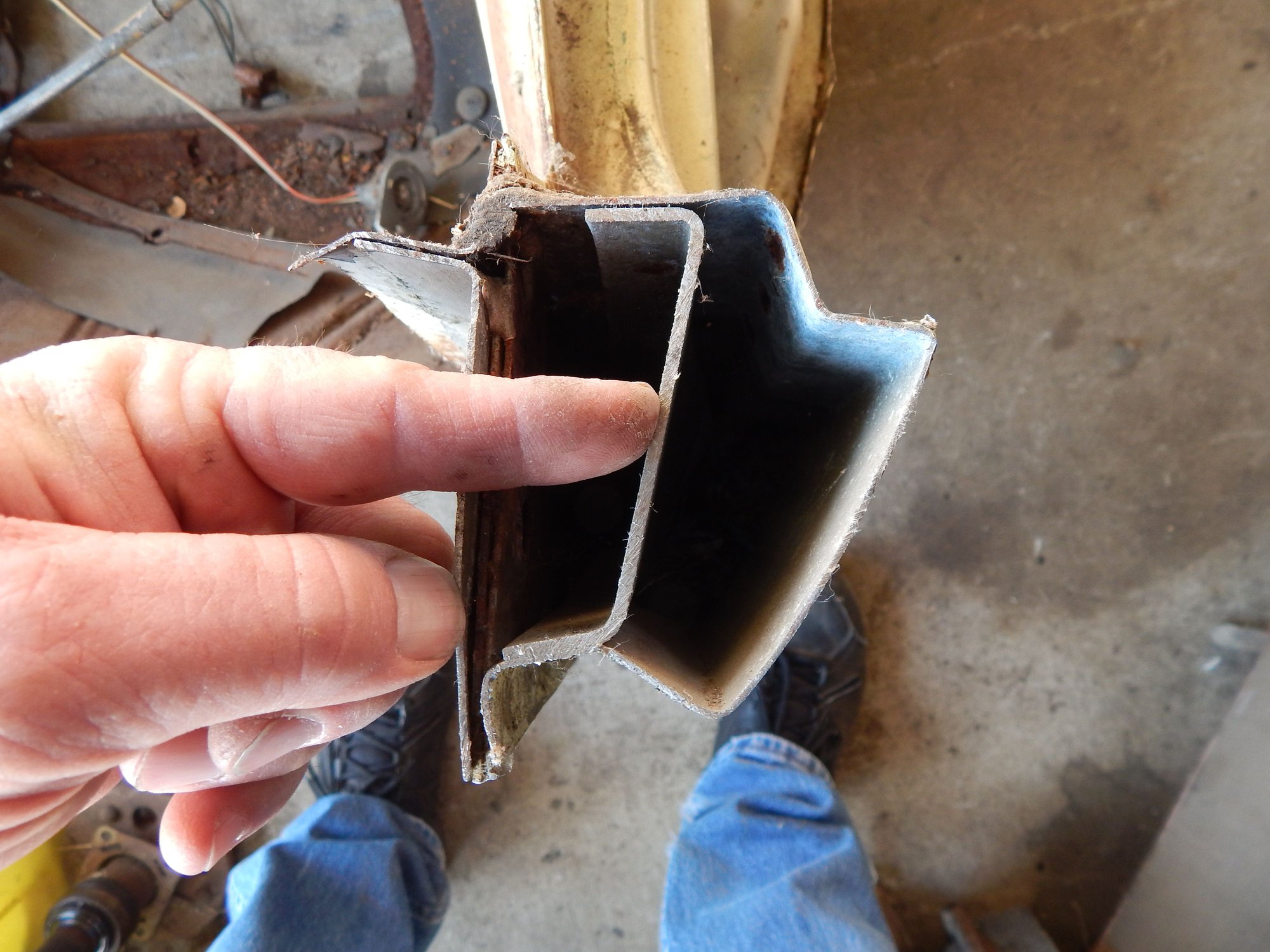 I'm back to sorting through the clutter and trying to get things organized. I stumbled across something that caught my eye. The rocker panel on a 1964 Cutlass convertible has extra support added to it when compared to the hardtop or sedan. I looked at both a 1965 2 door post rocker and a 4 door, they both had open rockers. The convertible has a thick C shaped piece inside of it, and another layer on the side of the rocker facing the frame. I knew the convertible had a stronger frame, but didn't realize support was added here too. I'm posting a few photos just for kicks so you guys can see what I was looking at. The first photos will be from the 4 door rocker. The next ones will be from the convertible. John