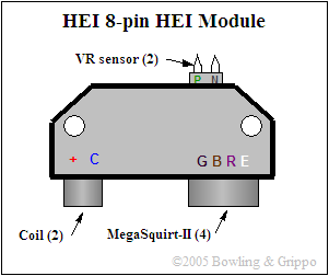 Here's more info on the GM distributor modules from the Megasquirt website. The small cap distributor uses the eight pin module (lower left), which is identical in function to the seven pin module used in the CCC distributor (upper right) except that the eighth pin is an extra ground.