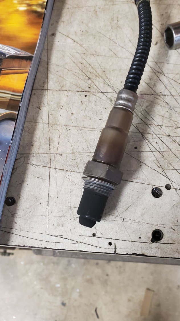 Last post was 4/3, and there was yet another chapter i skipped over. I had it dialed in pretty well, however it still was dumping fuel on a large MAP/TPS transition (3000 rpm cruise, then put it to the wood), resulting in a full rich bog, 9.5:1 afr. I went rounds with fitech Bryce via email, and he was ADAMANT that my fuel system was inadequate, the injectors too small, my settings wrong, etc. It was all my or the car's fault. I had seen a youtube vid from a guy in Canada with a big block, 4 speed Chevelle, and he was changing the VE tables- something I was hoping to avoid. It was inevitable, and my last resort on the computer tuning front. Low and behold, I found a huge fvck up in their fuel map. The 100kpa line was 98, 106, 103, 101, 99 at 2700, 3600, 5200, 6000 rpm. 106 is not a smooth transition from 98 to 103, so I fixed that and went around the block. Same fat fuel dump. I tried twice more using the same method, pulling fuel from the top 2/3 of the fuel table, and it still dumped fuel from part to WOT. That's when I threw in the towel and pulled the trigger on the carb. Here's the obviously lean O2 sensor I pulled out 🙄
