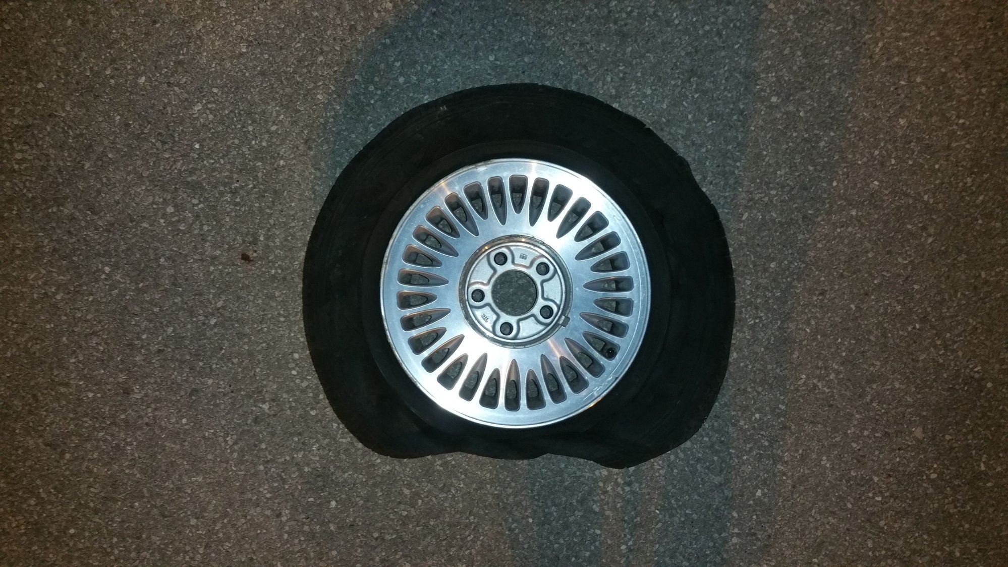 So, I've been driving my 96 98 Regency Elite to work regularly. This morning I made it about 12 miles on the highway and I heard the tire start to go flat. I wasn't sure if it was a tire or rear bearing but I pulled off the highway. I went 35mph for about a mile toward a travel stop. The tire blew completely and I had to drive the last 1/2 mile on the rim.
