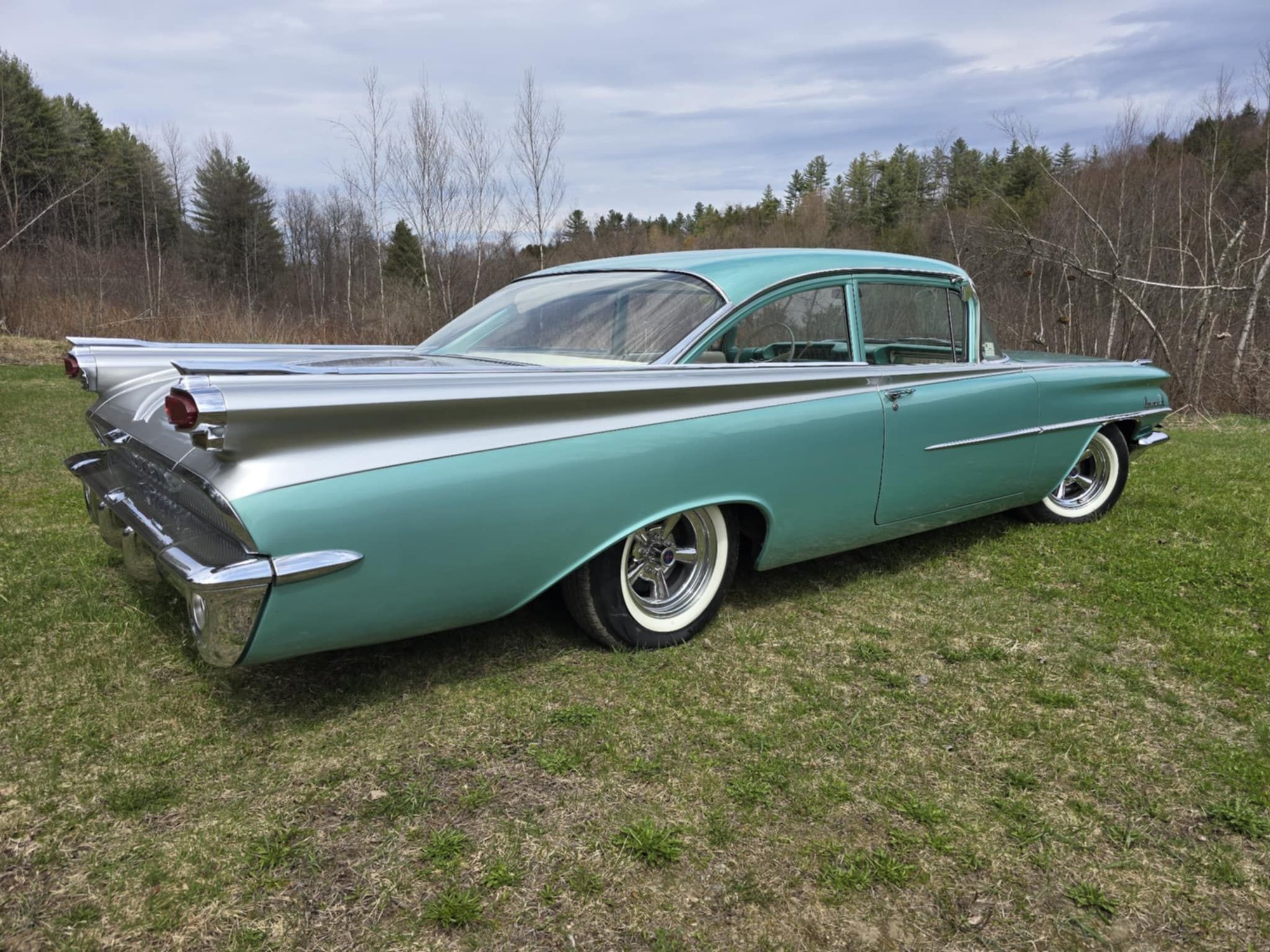 Your car, which is very nice, by the way, was the very bottom model offered by Oldsmobile in 1959. It is called Dynamic 88 2-Door Sedan. Production was 16,335. Original base price was $2,837 (equivalent to about $31,000 today).