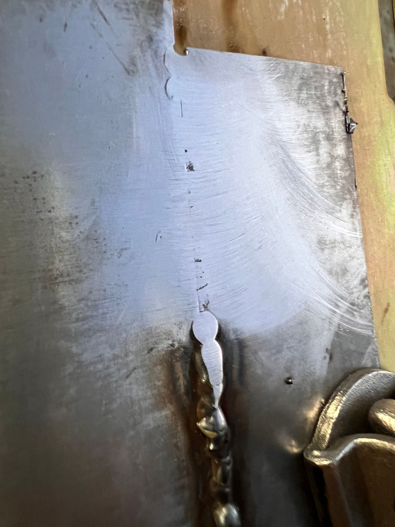 I tried my hand at butt welding. Tacked the piece along the seem and then used a grinder to smooth it out.