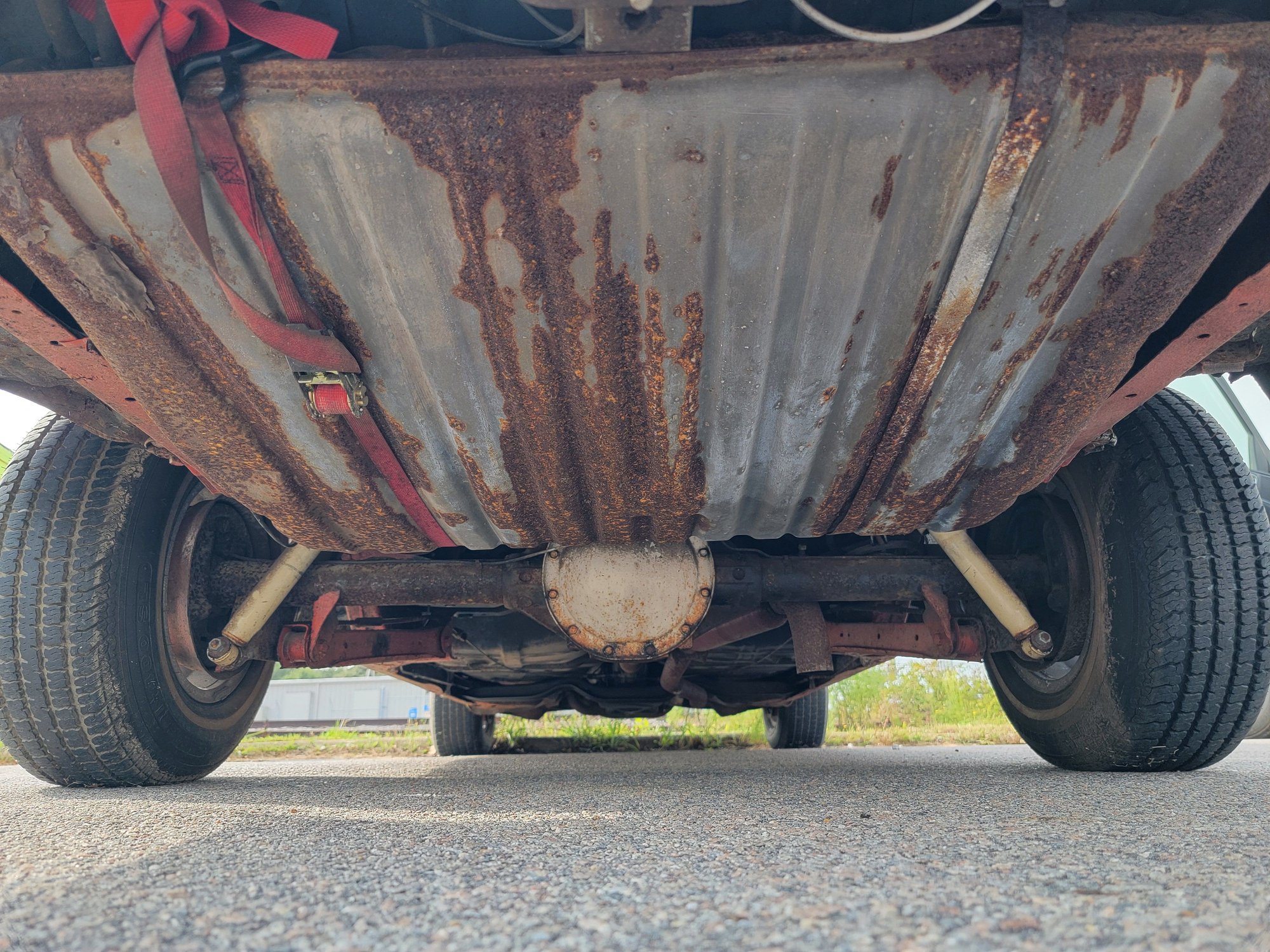 Love the mud line on the right rear tire. that car sat in the mud for a while. Obvious repaint, and the gas tank "strap" and rust covering the bottom of everything just screams something that has sat exposed to the elements for a long time. Flipper special