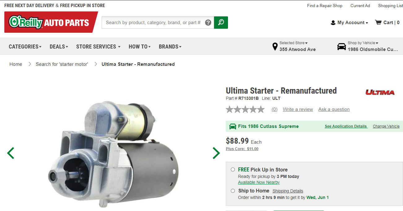Hello Mr. Joe. The part (Starter Motor) I would be providing to him was the same one he installed (As pictured) and purchased at the same place (O'Reilly). I have no qualms for the work was done right. Why can't people at least be honest?