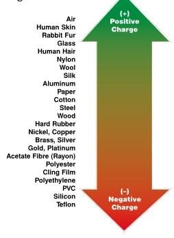 Example of how much surface electrostatic charge exists on certain objects (Triboelectric Charges) - PVC and all plastics have high surface negative electrostatic charges.