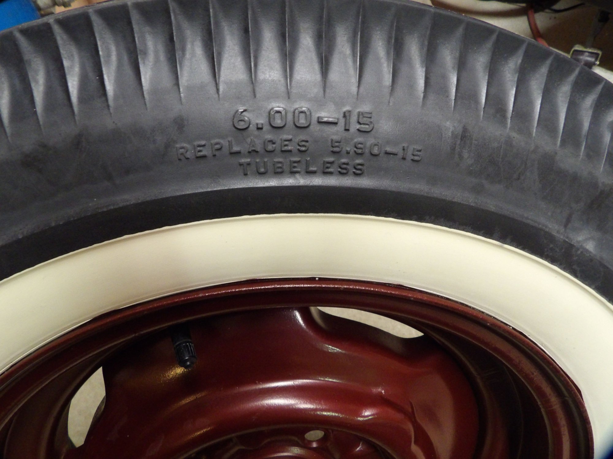 I thought the 13 inch tires were tough but the 15's are even harder. I want a radial in whitewall that would be the same size as a 600 15. There just isn't anything out there. This tire measures 26.2 diameter just by using a tape measure. All the tire conversions on the net I find show the replacement in radial is 185 70 15 but that diameter is much smaller. I can't even find the exact bias replacement at Coker. All the whitewalls they have are way to wide or the tire size is wrong. I would be ok with a thinner whitewall but can't even find the right tire in any white wall.