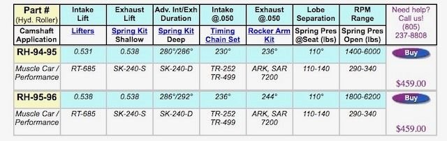 Now, before all the W-31 purist out there give me heat for messing with a good thing, I’d appreciate some wisdom regarding the spec’s of this cam? I’d like to know if there’s anyone using a roller cam in a W-31 block? Looking at the lifter picture you’ll see the lifter tie-bars facing the outside do the interference with the intake manifold crossover. Choosing a cam is similar to finding a compatible wife; however, changing out a cam tends to be cheaper than getting a divorce…