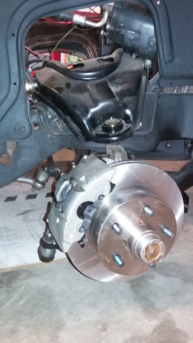 Kennybill, the disc brake conversion kit was made by SSBC. The bracket fit fine but the rotors they sent us didn't quite clear the the outside OD of the hub. We had the hubs lathed but then found the huge calipers kept the wheels from going on as the wheels that year weren't shaped the right way to allow for calipers. Might have gotten away with spacers but we didn't want to go that route. Also might have had luck with a '70's style 14x6-7 on 5x5 but our initial trip to the junkyard was unsuccessful. We're currently shopping for some kind of Tru-Spoke sort of wheel and a different kind of disc brake solution that has smaller calipers just to be sure. We think we've found one but I don't have their name on me. It'll be around $300 more iirc. The spoke rim we're looking at right now is http://www.ogrimsdirect.com/ProductD...x7AC%5F72%5FCL