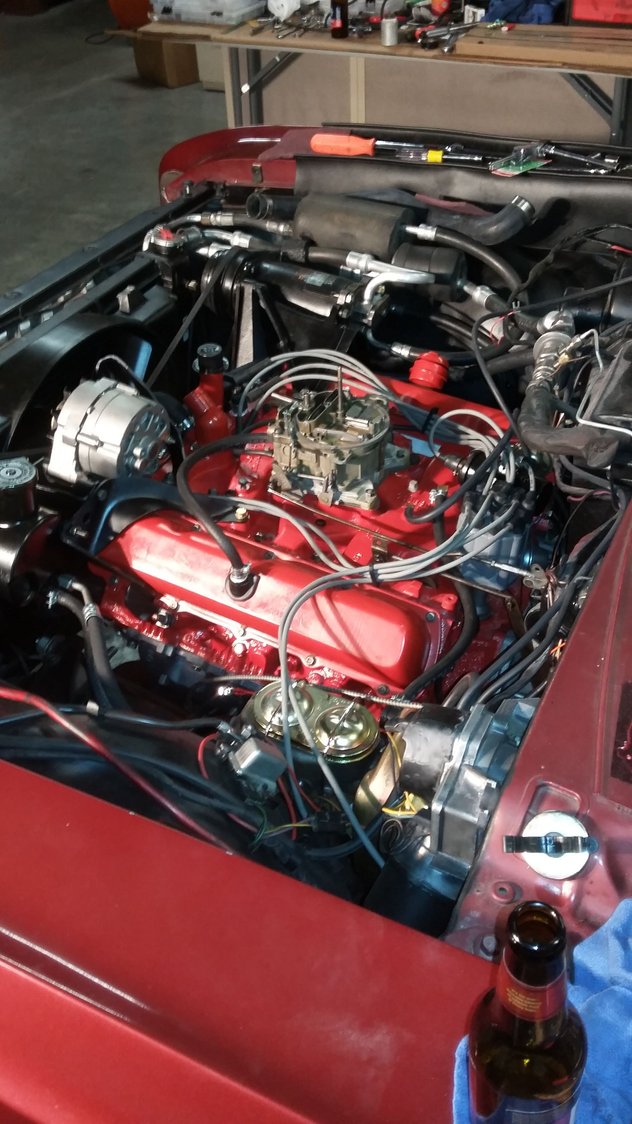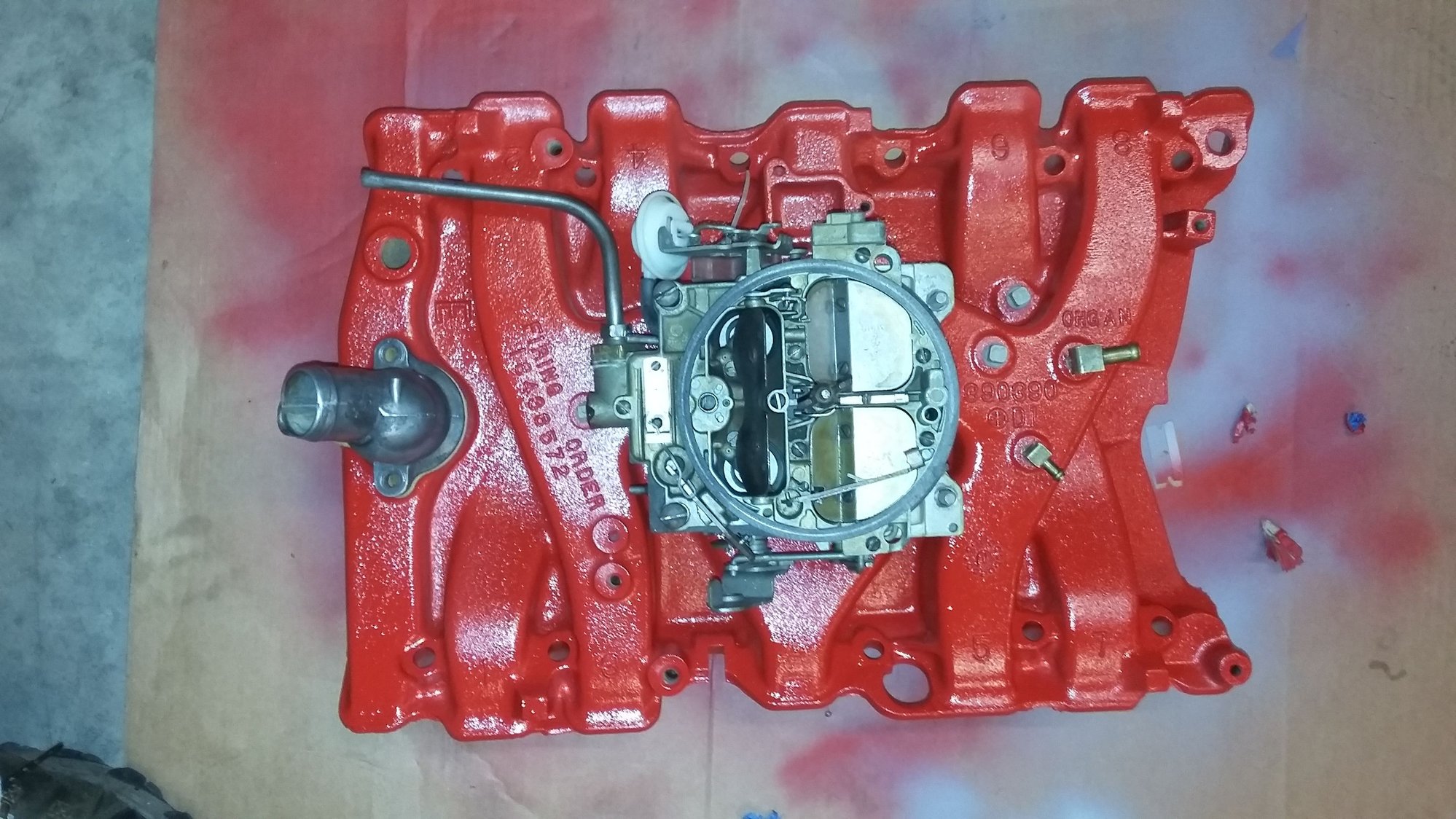 I have the original intake and carb and i had the intake powder coated but the one on my engine now is a powder coated elderbrock with a deamon carb.