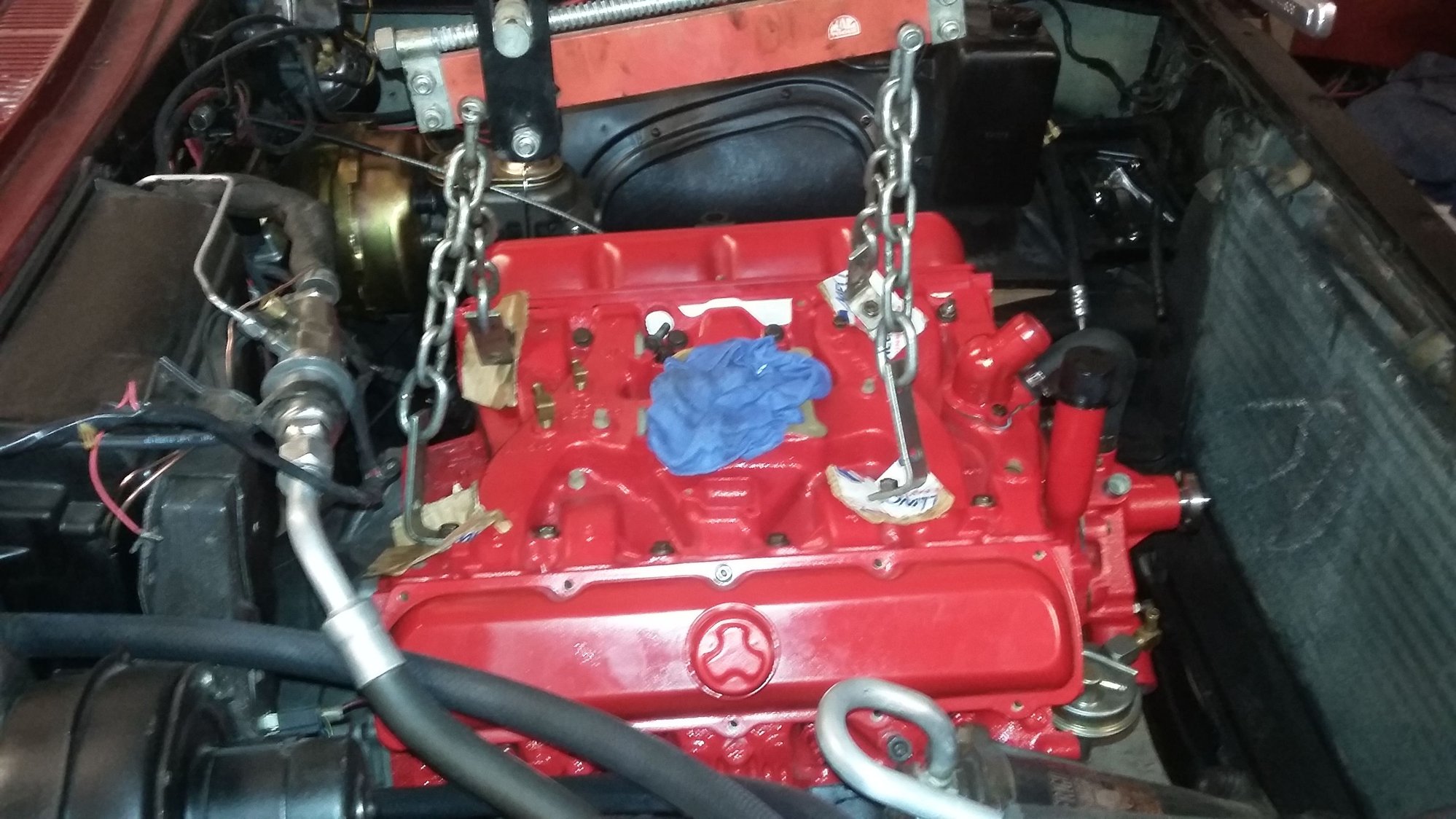Just so you know, this is the engine placement on a '66 Olds 98 425cid when you have the motor mounts reversed. Don't ask me how I know.