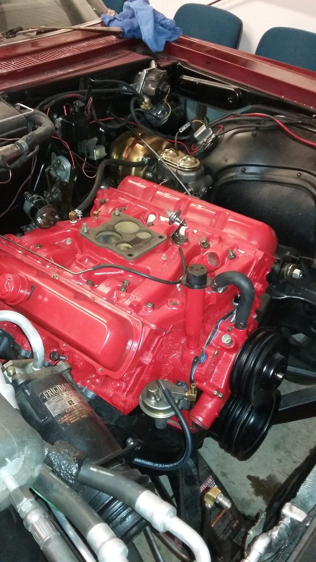 1966 Olds Red baby! We applied a couple layers of primer, 3 layers of the red and another 3 of clear coat, all hi temp stuff.