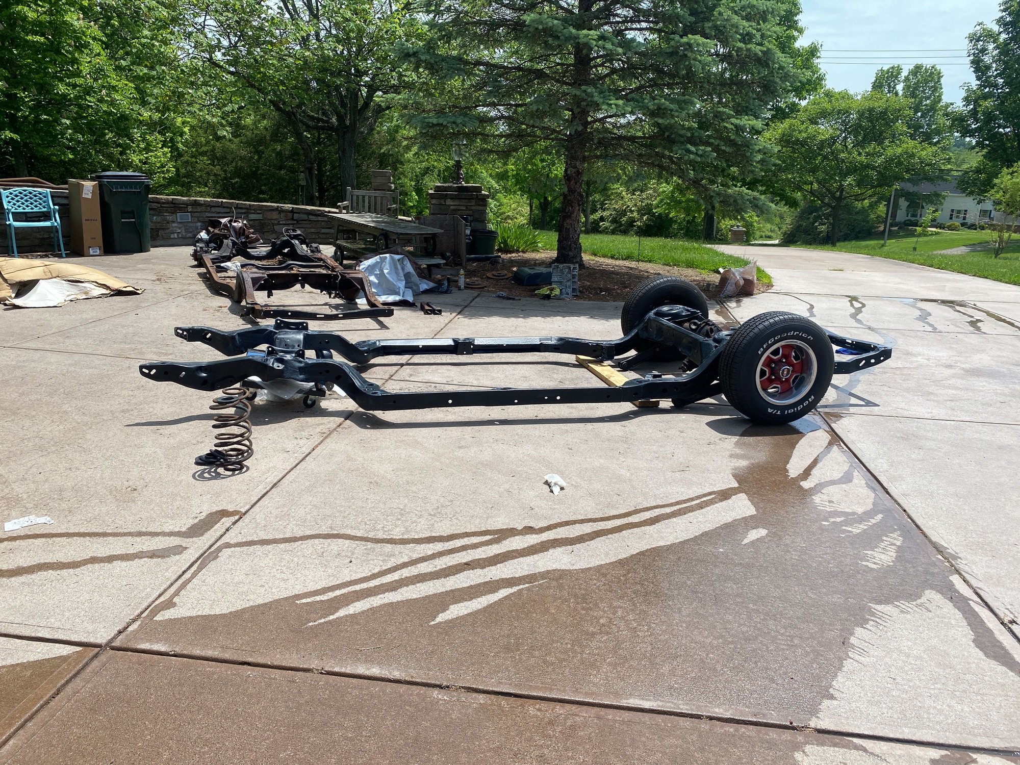 Before going any farther with the frame give it a good inspection. If its rot free have a frame shop put it on table to straighten XY&Z axis. Then repair paint powder coat etc.