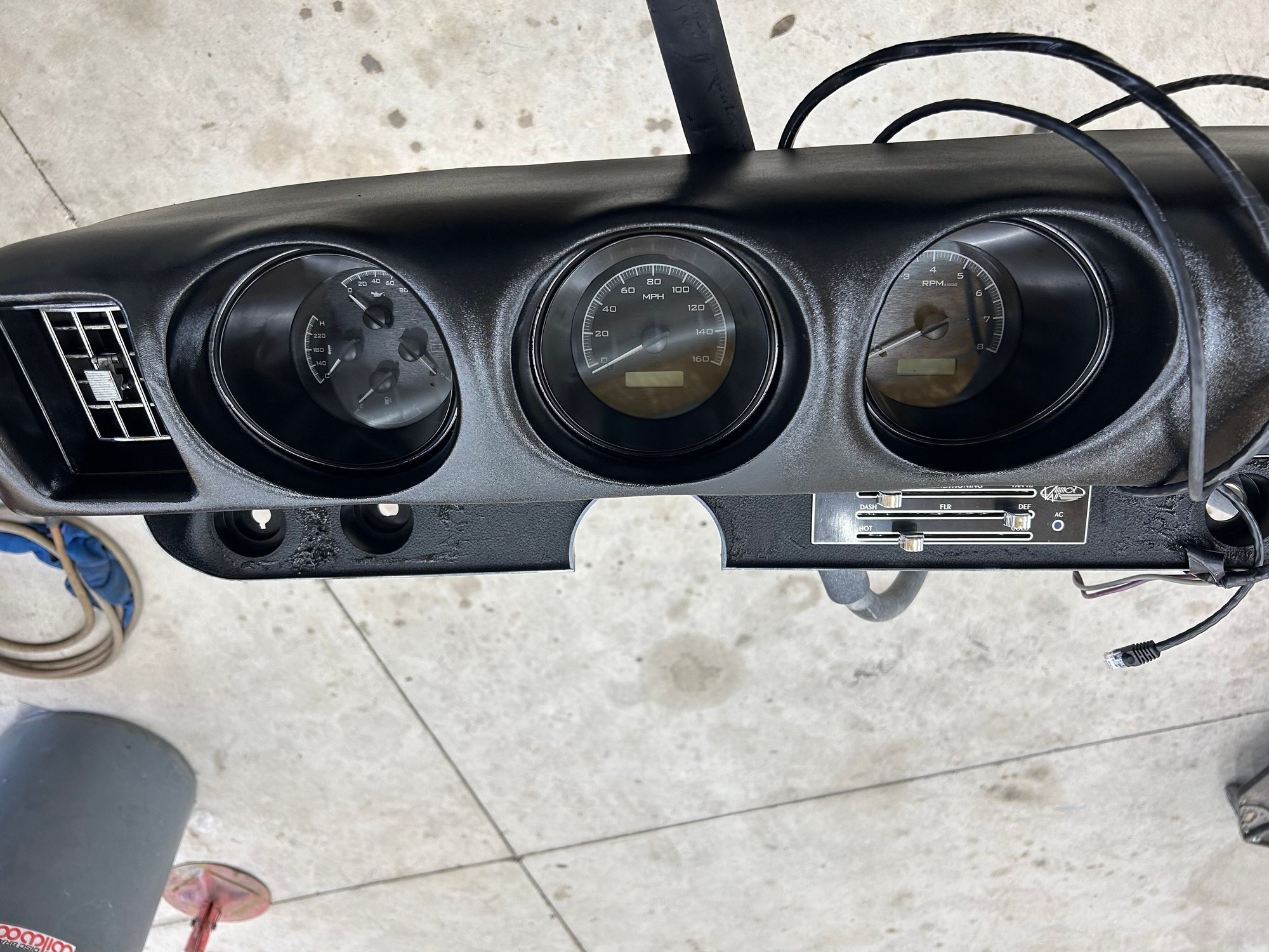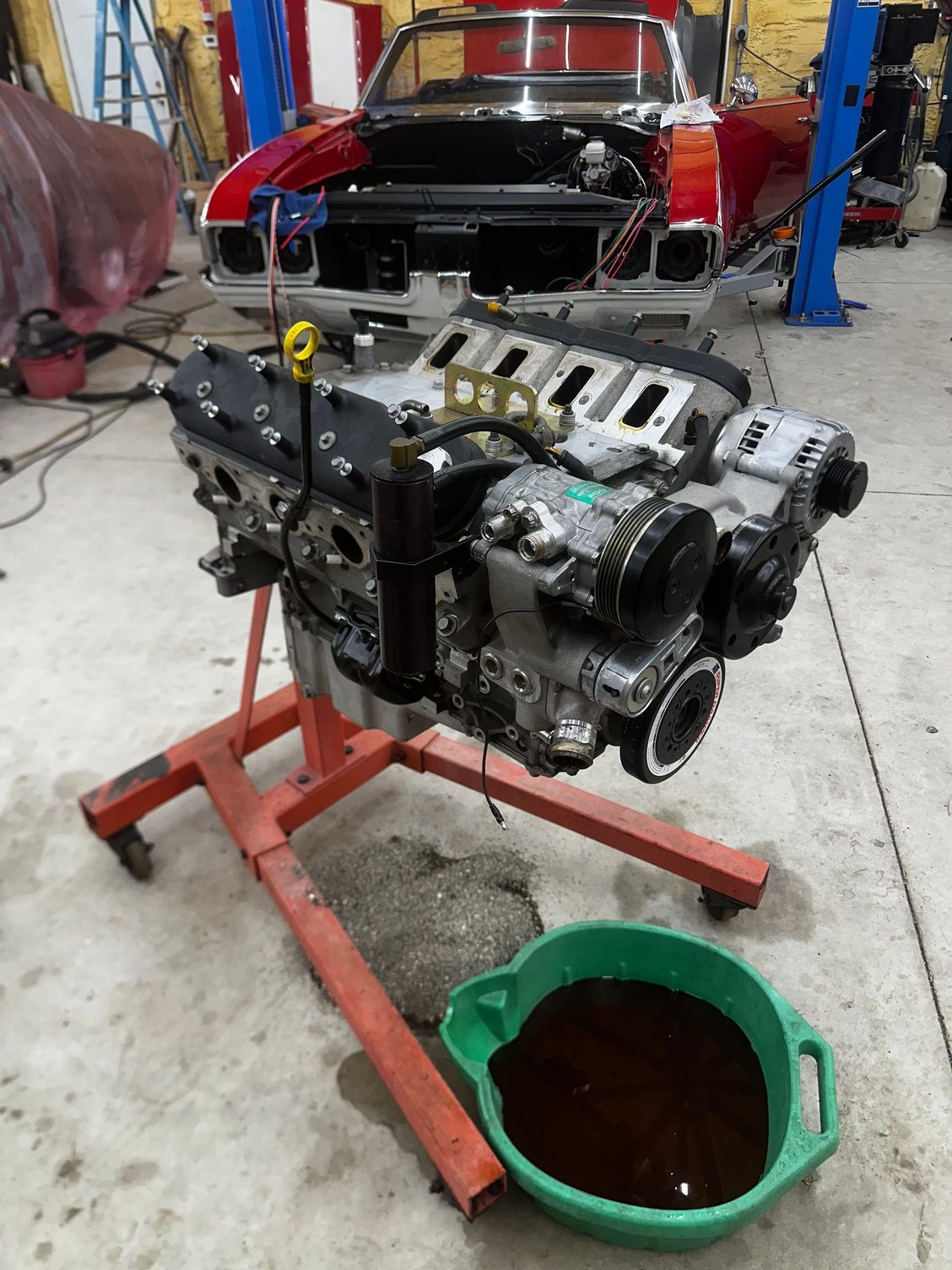 First upgrades were C6 corvette brakes front and rear and Detroit Speed coilover suspension front and rear. I drove it for a few months with the original Rocket 350 and Turbo 350 but they were tired. . Fun cruiser but I knew I wanted to take it to the next level. One thing led to another and the car was re-wired with an American Autowire Classic Updated harness, Dakota digital VHX gauges and a Gen V Vintage air AC unit. Unplanned metal repairs invcluded a new truck pan and drivers toe board pan. the firewall was smoothed and new seat components were ordered from Legendary. I took the LS3 form my camaro and added a 4L70E And painted them the proper 1969 colors. The. Majority of the work is being done at a buddies shop in Deland, FL