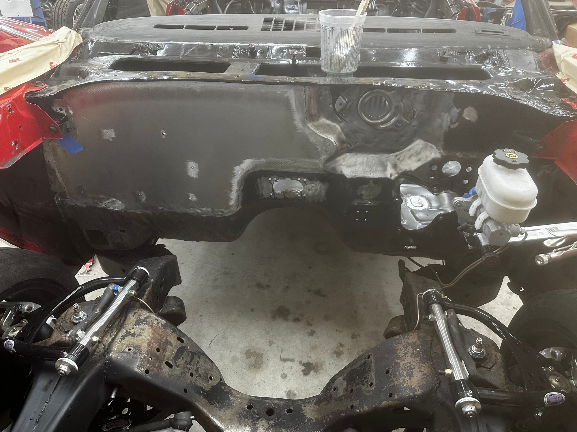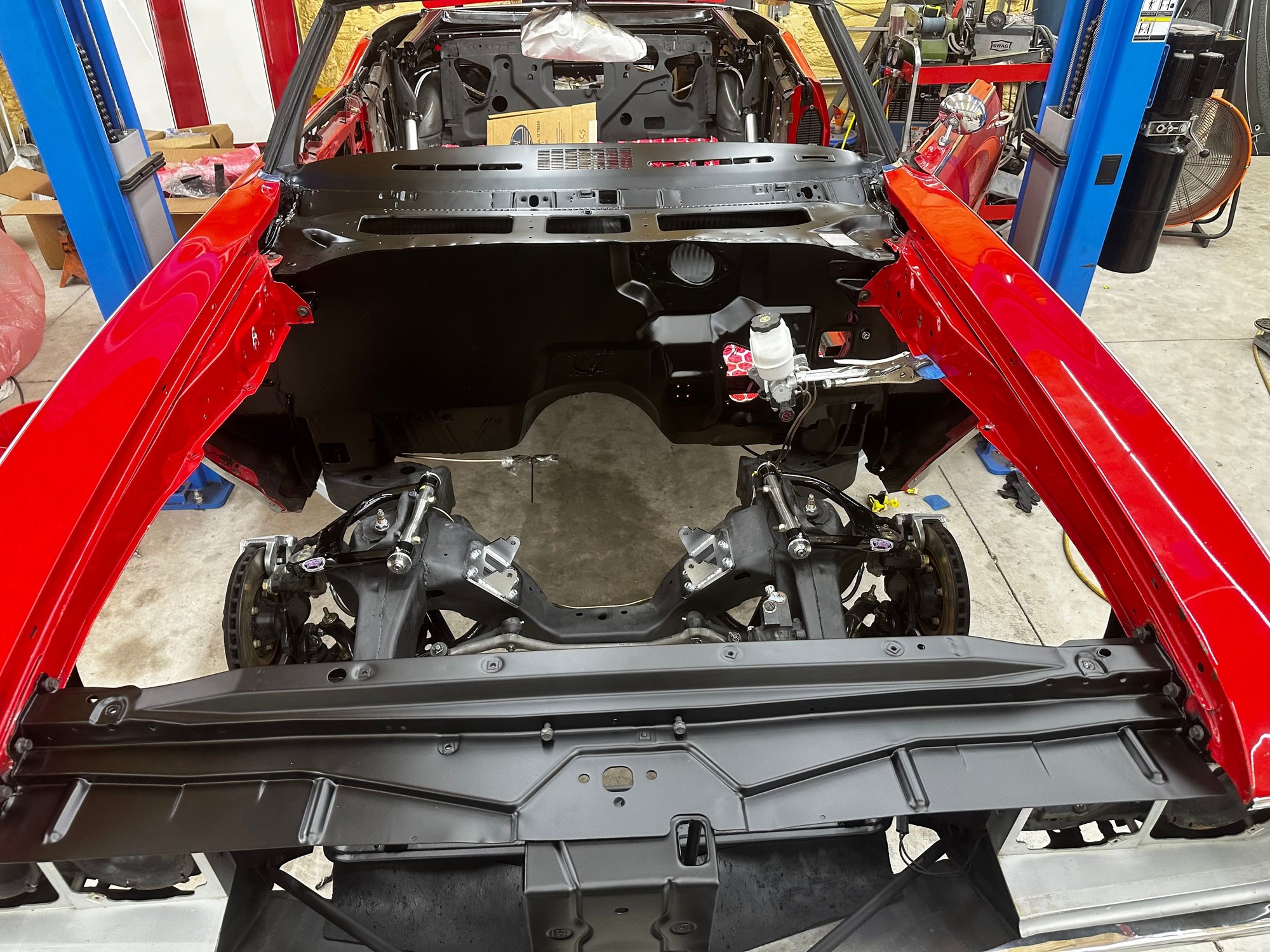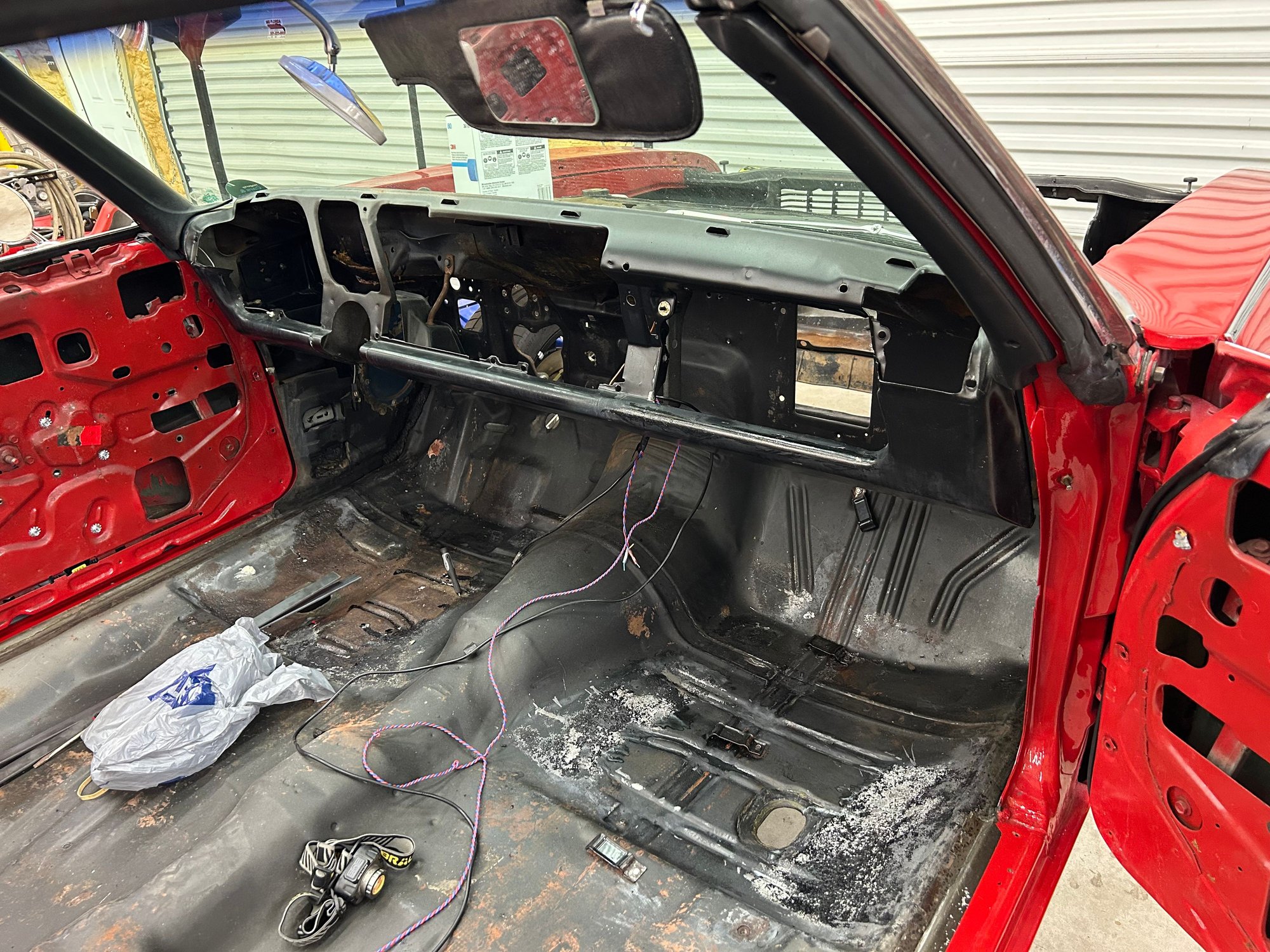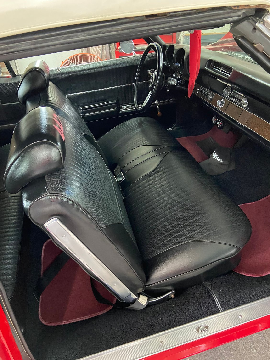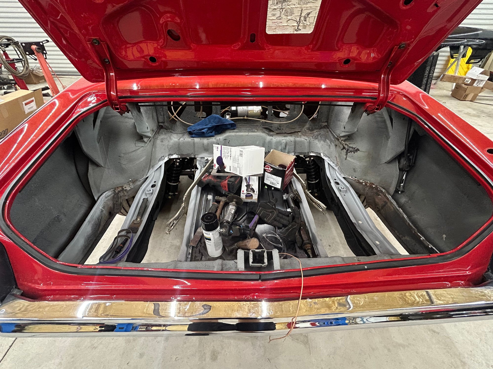 Nice. Looks like mine, sort of. At a glance, you need a glove box emblems and you need to swap out the trunk trim for the correct thin edge piece. Is that a drum brake M/C with an aftermarket disc setup?