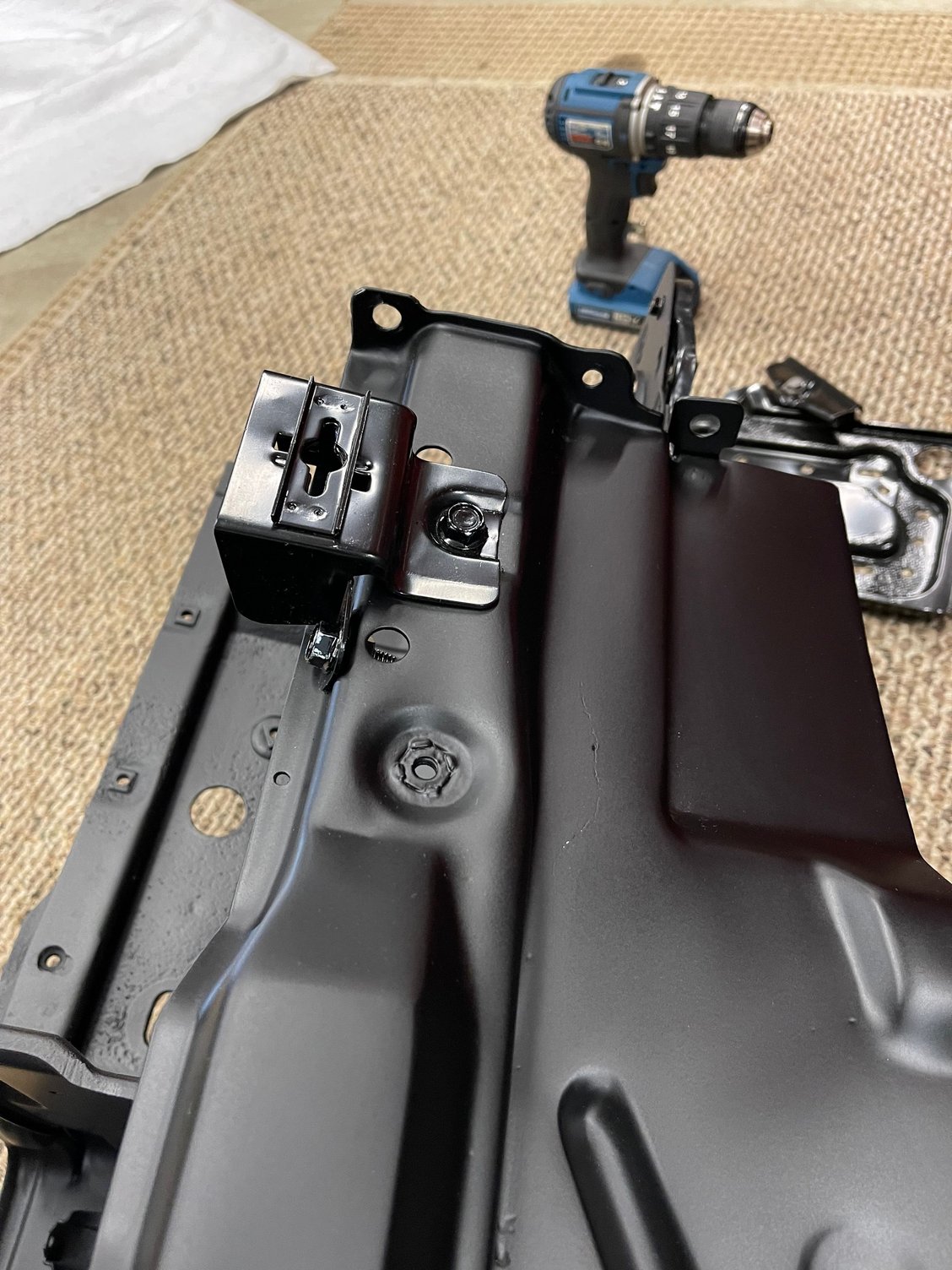 Added my hood brackets today to the core support, I can adjust placement once the hood is in the fitting stage.
