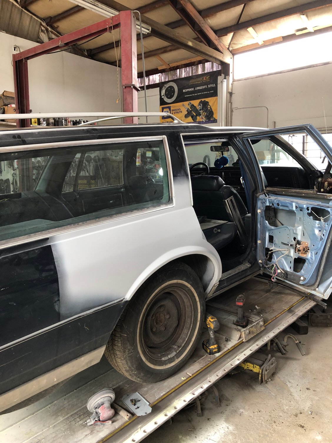 I bought this towards the end of summer 2018 for $800. I could not get the diesel to run properly, so Jan. Of 2019 I put the 350 from my old 66 f85 in and had been commuting as well as using it as my work truck. Over the next year I installed a class 3 receiver, lift bags in the rear springs and a 1” rear sway bar, put in new speakers and added the third row seat. January 2020 I put some new white striped tires on and got her all cleaned up to go to a cabin, unfortunately on the return trip I got hit and the passengers side got wiped out. As of today it is in the body shop getting fixed up and I have plans to further restore the vehicle as well as improved ride quality and towing ability.