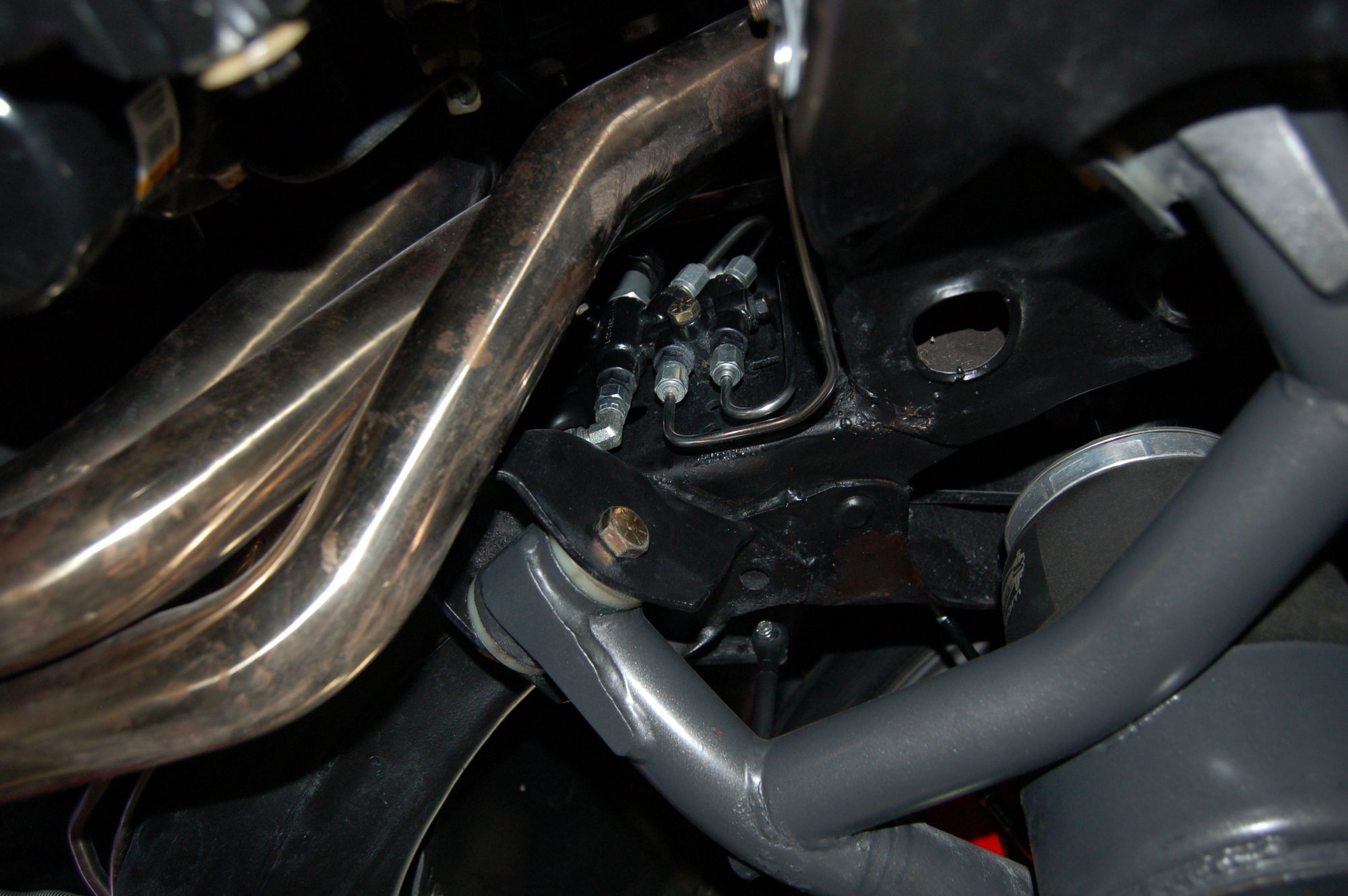 Looks like your brake lines are in, but here are some pics anyway. The header clearance is a little tight, but temp has not been an issue so far with high temp wilwood fluid. I used 3/16 with 3 an lines for everything but the main line going to the rear which is 1/4 4 an. If I was going to do it again, I would run 3/16 for all of the lines as I had trouble finding some of the 4 an fittings.