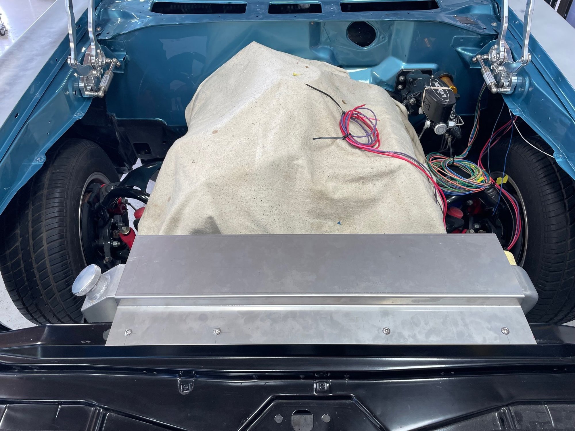 Lots of progress and getting really close to paint. We decided paint with the car all together and spend a little more time masking everything off. Don’t really want to risk scratching etc realigning everything. Really happy with the way everything fits. Final block with 800 and we are ready. Should be within the next few weeks. Wiring is coming along, using a kit from American Autowire - 3rd time using their stuff ad really like the quality. I made some brackets to reposition the fuse block for easier access and more clearance.