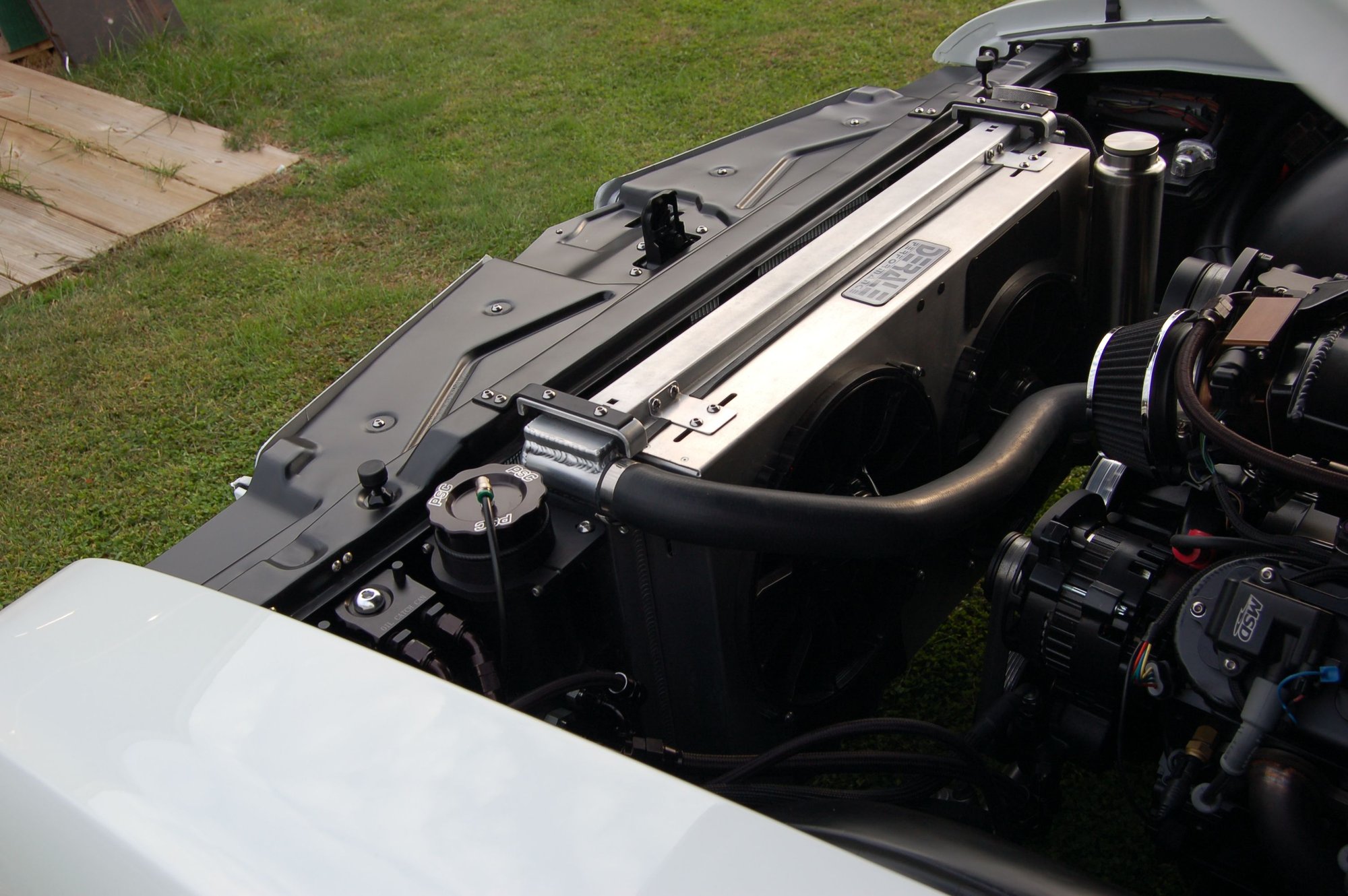 Here is the PSC reservoir installed. The remote vent is mounted in front of the radiator.