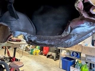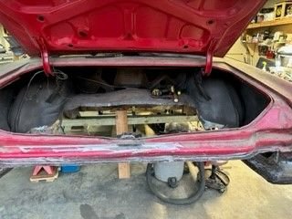 It looks like you were originally planning to just replace this rear brace (not sure what the correct name is) - the part with the rear body mount caged nuts that you've removed here. Obviously you've opted for the full trunk pan replacement but did you find a replacement piece for that cross member on it's own?