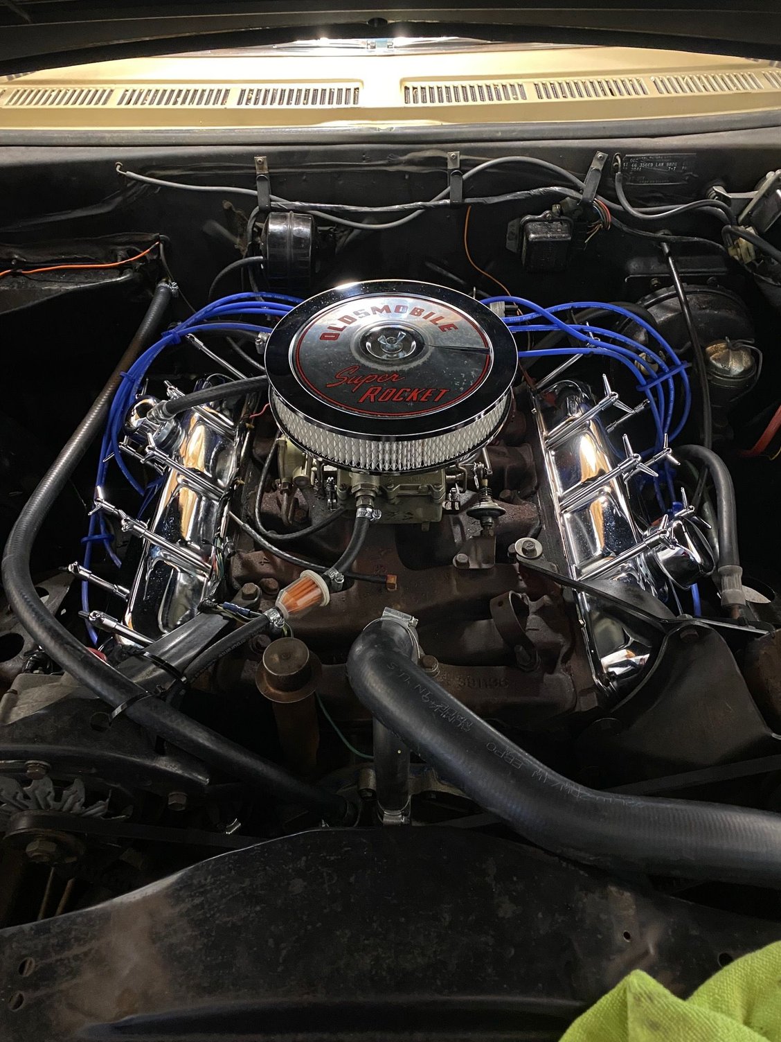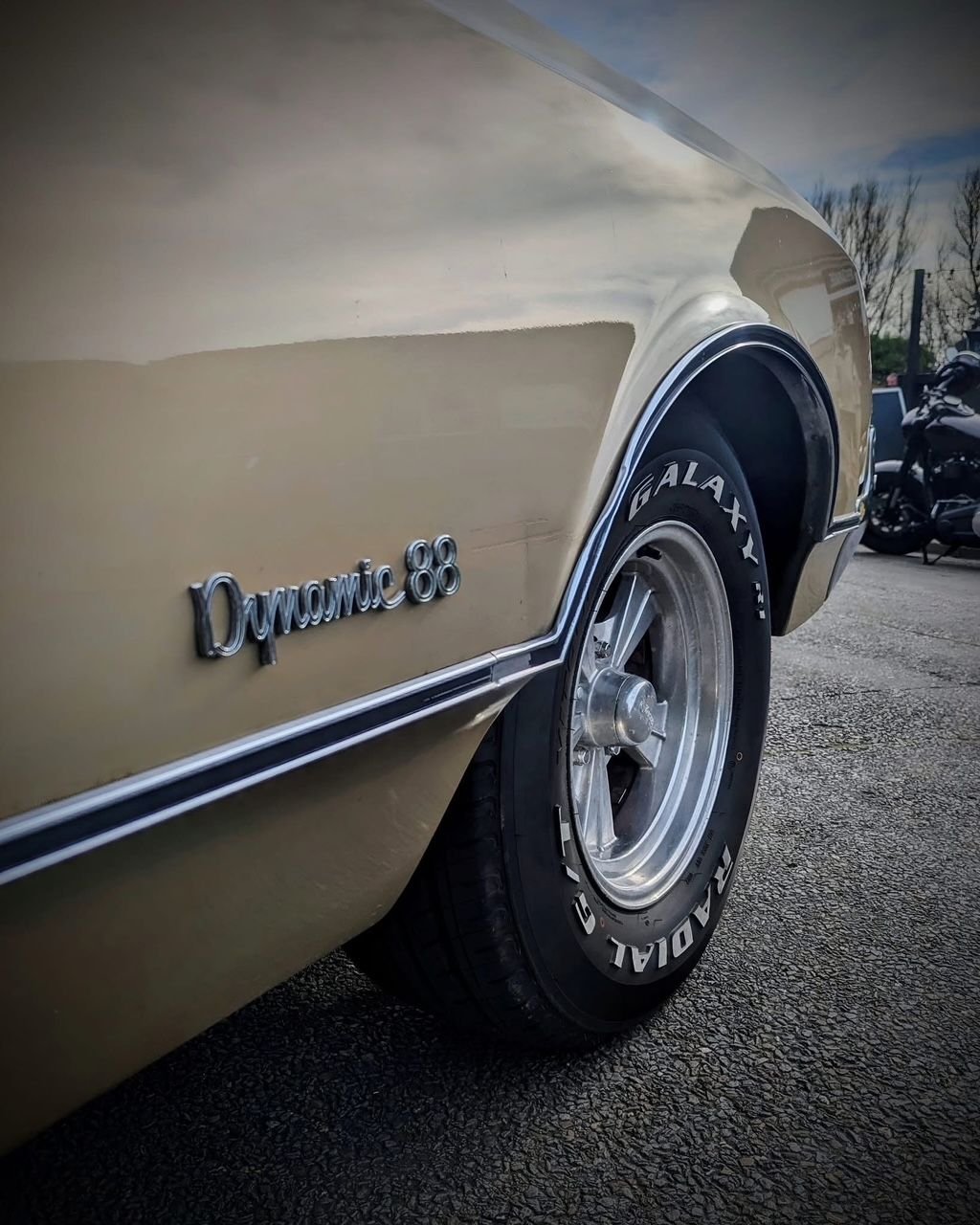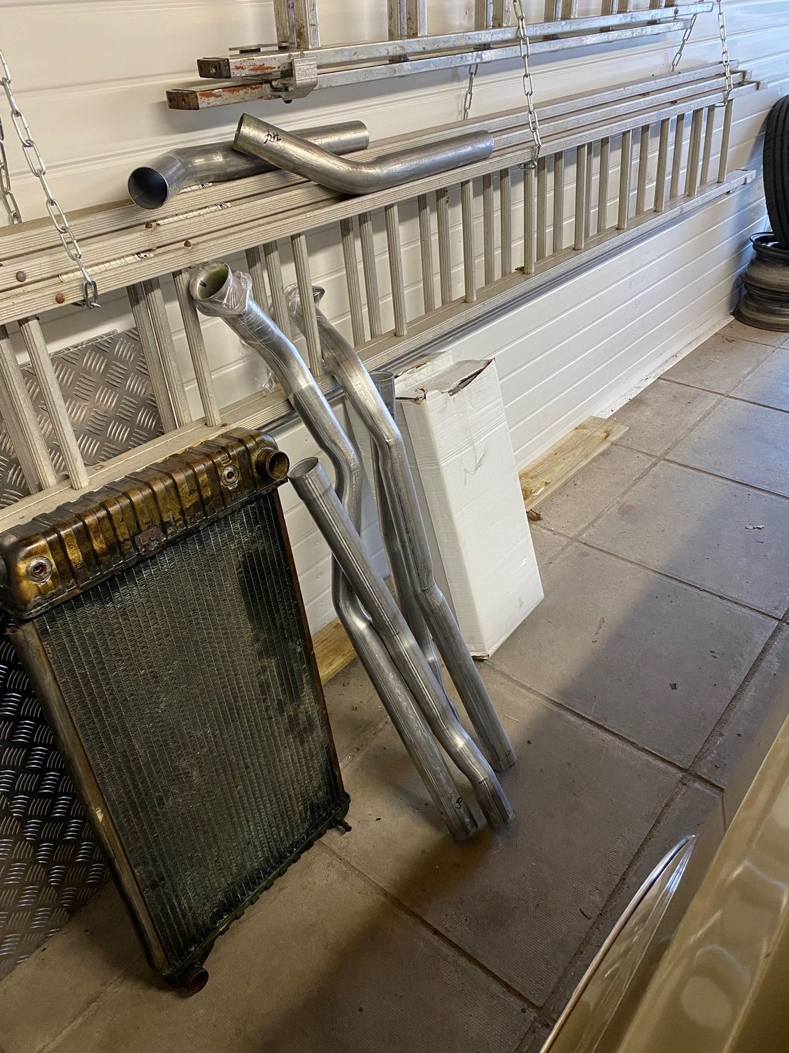 Been a busy few months with work and the poor Oldsmobile has been put on the back burner a bit as no doubt many of us on here are in the same boat. Managed to source both the exhaust manifolds and the complete exhaust system for the twin pipe conversion from a recommendation on the forum by a member. I am still yet to fit them as I recovering from the postage costs from the USA to here in the UK, 80kg in weight which wasn't cheap plus import duty here. Also sourced an Aluminium Radiator in the States and shipped that over which I have had time to fit, just need a NEW Brake Master cylinder now and Alternator which are on their way from Rockauto. New rear Air Jackers shockers and also New front standard ones fitted, managed to get to a local meet last week and she did turn a few heads.