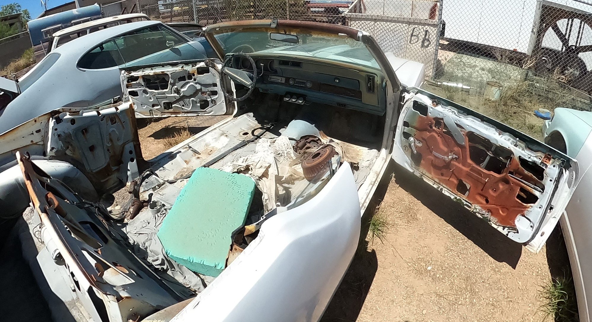 2. Convertible Top.... The frame is sitting inside of the car now. He said that he has a new-ish vinyl top to put on it. (He says "New-ish because it is brand new but sitting inside his house for 10-15yrs).